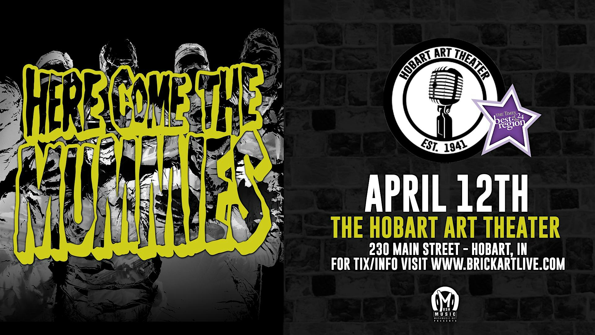 by admin13Feb Here Come The Mummies at Art Theater – Hobart, IN Here Come The Mummies at Art Theater – Hobart, IN 1 1 people viewed this event. Here come the Mummies April 12 5:30 Doors 7Pm show Tickets-RSVP Link Date And Time Monday, April 13th, 2026 12:00 AM (PST) Venue Art Theater Location 230 Main Street, Hobart, IN 46342 Event Types Concert or PerformanceMusic Event Category Indiana Share With Friends Facebook Twitter Linkedin Xing Pinterest Share This Post: