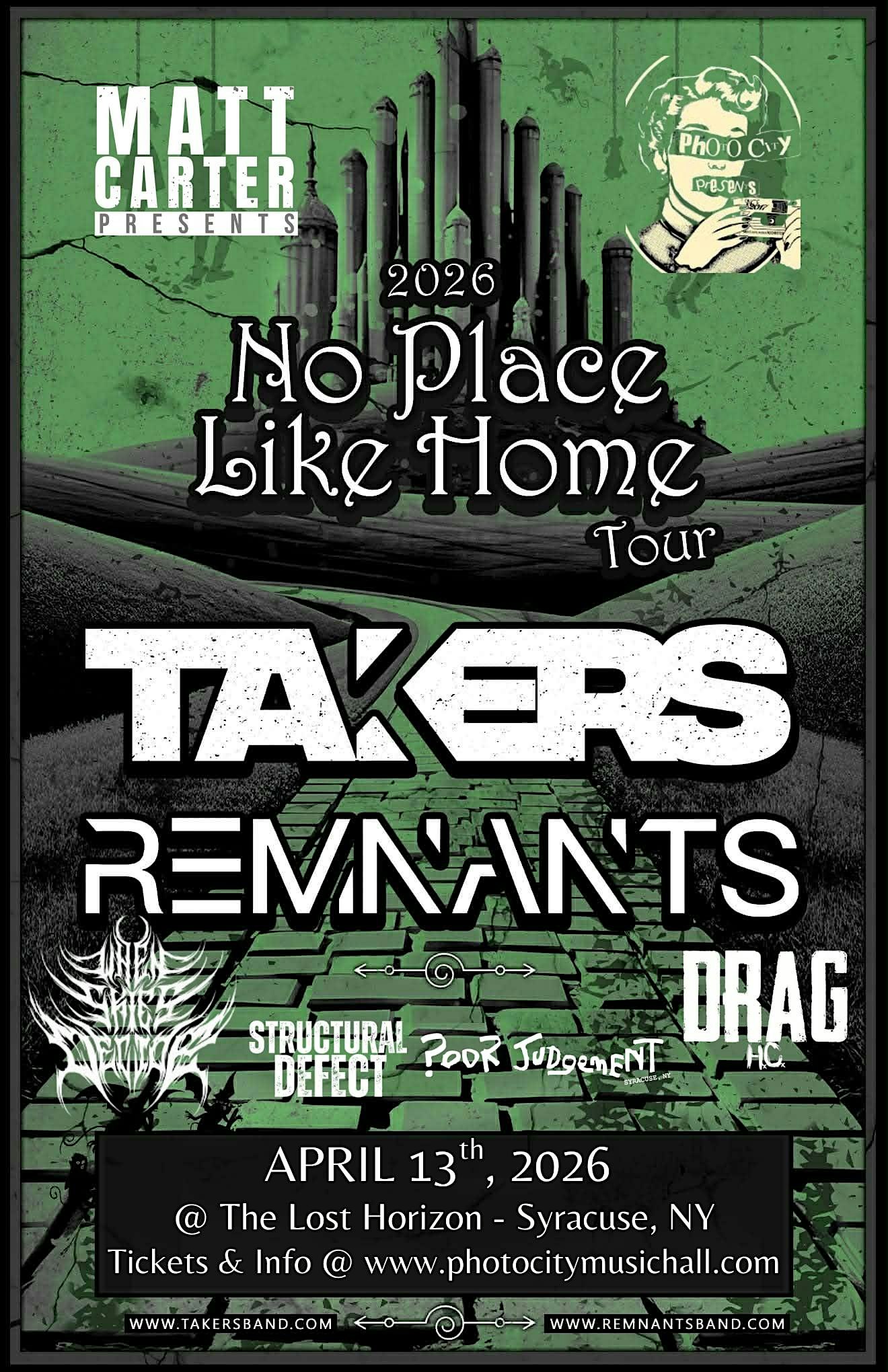by admin13Feb Takers & Remnants – Syracuse, NY at The Lost Horizon – Syracuse, NY Takers & Remnants – Syracuse, NY at The Lost Horizon – Syracuse, NY 1 1 people viewed this event. Metalcore hits Syracuse as Takers & Remnants headline the No Place Like Home Tour with Drag HC and more Tickets-RSVP Link Date And Time Monday, April 13th, 2026 10:00 PM (PST) Venue The Lost Horizon Location 5863 Thompson Rd, Syracuse, NY 13214 Event Types Concert or PerformanceMusic Event Category New York Share With Friends Facebook Twitter Linkedin Xing Pinterest Share This Post: