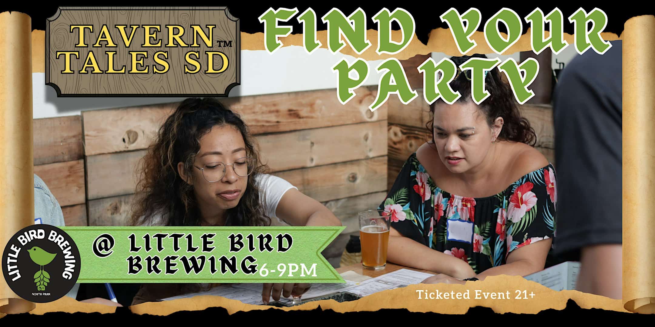 by admin23Feb April 14th – Find Your Party: Little Bird (D&D) at Thorn St. Brewery – San Diego, CA April 14th – Find Your Party: Little Bird (D&D) at Thorn St. Brewery – San Diego, CA 3 3 people viewed this event. Join us at Tavern Tales SD: Find Your Party for a night of table top gaming, prizes, and community building in San Diego! Tickets-RSVP Link Date And Time Tuesday, April 14th, 2026 06:00 PM (PST) Venue Thorn St. Brewery Location 3176 Thorn Street, San Diego, CA 92104 Event Types Party or Social Gathering Event Category CaliforniaSan Diego Share With Friends Facebook Twitter Linkedin Xing Pinterest Share This Post: