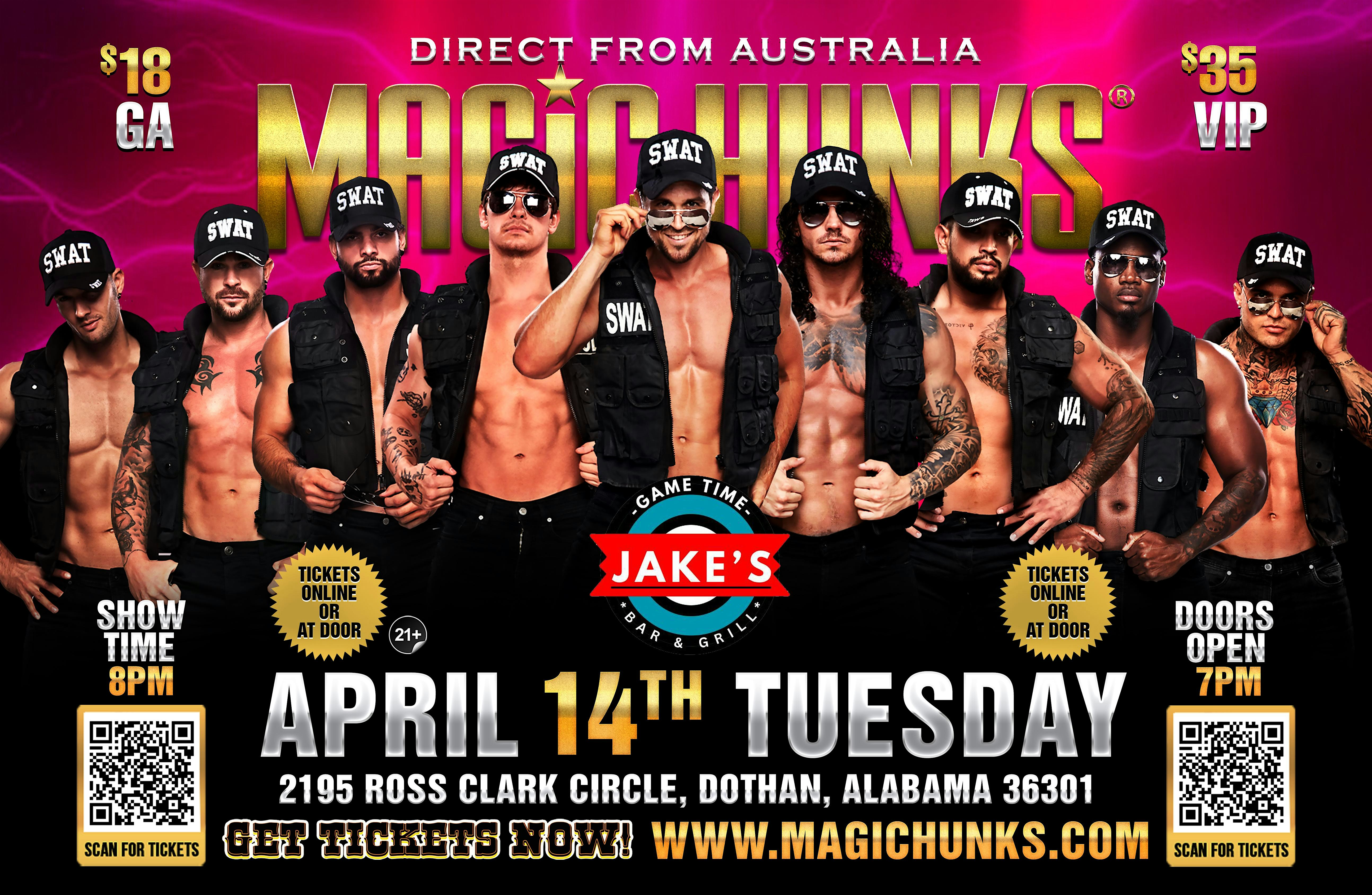 MAGIC HUNKS®  AUSTRALIA TAKEOVER IN DOTHAN, AL, USA!! at Jake’s Grill – Dothan, AL