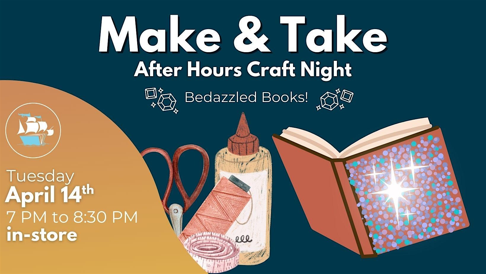 Welcome to our Make & Take Craft Night . Come and create your own fabulous Bedazzled Books! Join us at our new location at Rediscovered Books for a fun-filled evening of crafting and creativity. Unleash your inner artist as you design and create your very own personalized special edition book. Whether you’re a seasoned crafter or just starting out, this event is perfect for everyone. Come alone or bring a friend – either way, you’re sure to have a blast! Don’t miss out on this unique opportunity to make something truly special. All supplies provided. See you there!