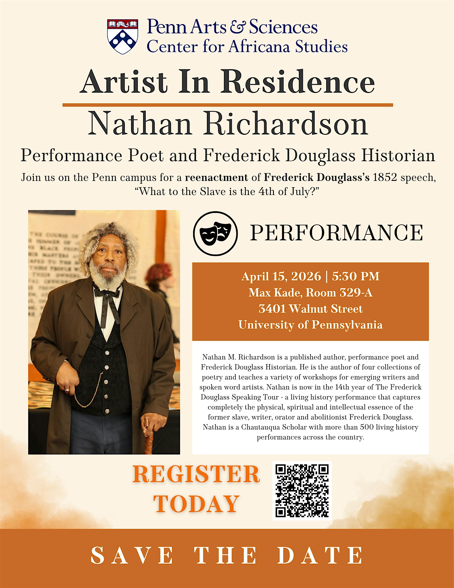 Join us as we welcome Performance Poet and Frederick Douglass Historian Nathan to Penn campus! This event will be live performance.