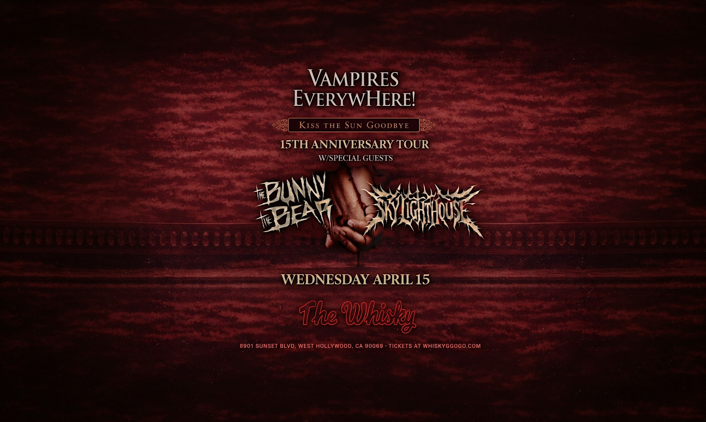 by admin24Feb Sky Lighthouse – Whisky a Go Go at Whisky a Go Go – West Hollywood, CA Sky Lighthouse – Whisky a Go Go at Whisky a Go Go – West Hollywood, CA 2 2 people viewed this event. Doors Open 6pm – Vampires Everywhere, The Bunny The Bear, Sky Lighthouse, Halfway Ghost, Etc Tickets-RSVP Link Date And Time Wednesday, April 15th, 2026 06:00 PM (PST) Venue Whisky a Go Go Location 8901 Sunset Boulevard, West Hollywood, CA 90069 Event Types Concert or PerformanceMusic Event Category California Share With Friends Facebook Twitter Linkedin Xing Pinterest Share This Post: