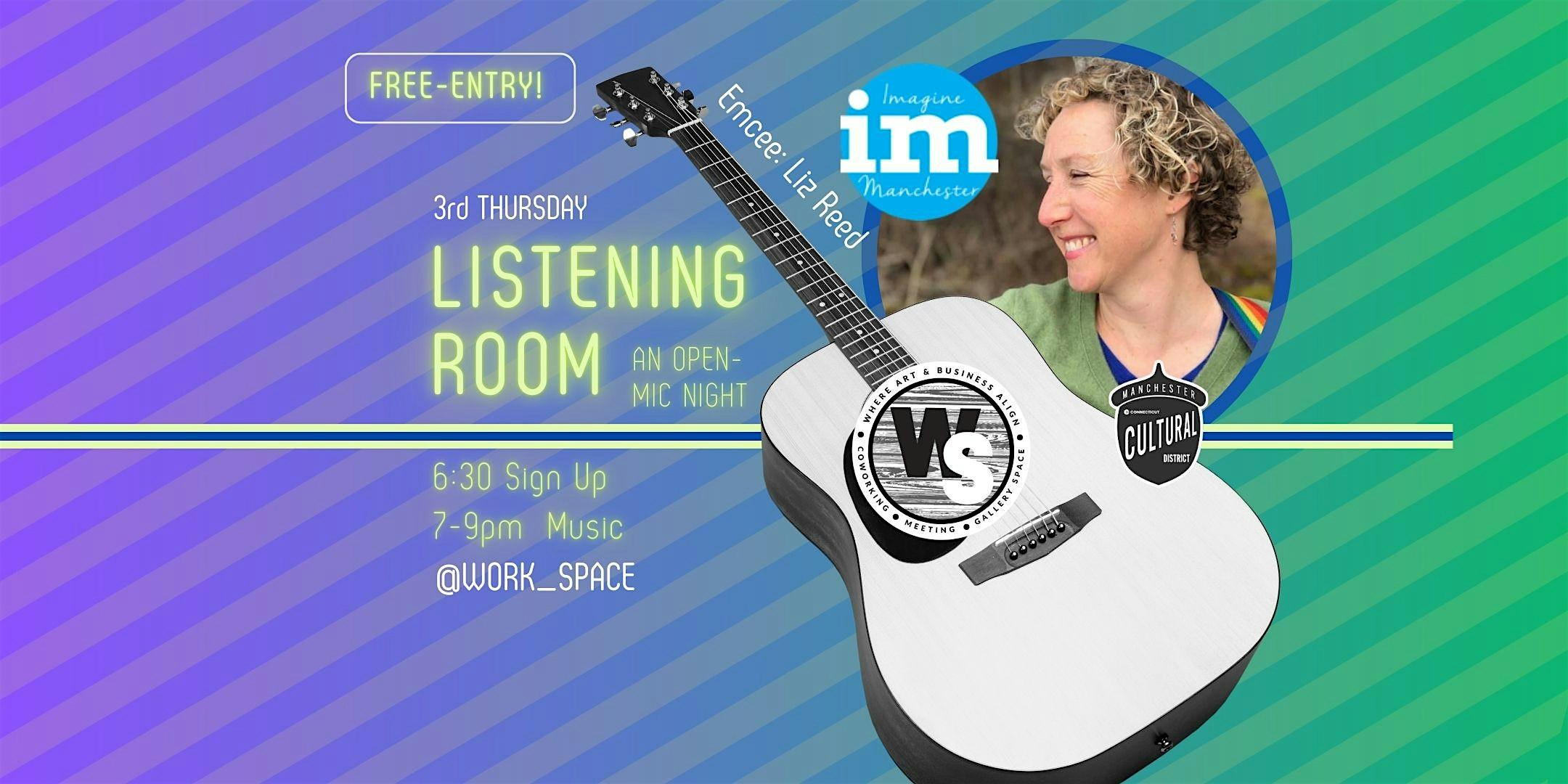 3rd Thursday Listening Room / Open Mic at WORK_SPACE – Manchester, CT 3rd Thursday Listening Room / Open Mic at WORK_SPACE – Manchester, CT 3 3 people viewed this event. Live Music & Spoken Word is Alive and Well at WORK_SPACE. Join us for this monthly gathering where you can entertain and/or be entertained! Tickets-RSVP Link Register for event Date And Time Thursday, April 16th, 2026 @ 06:00 PM Location 903 Main Street, Manchester, CT 6040 Event Types Concert or PerformanceMusic Event Category Connecticut Share With Friends Facebook Twitter Linkedin Xing Pinterest