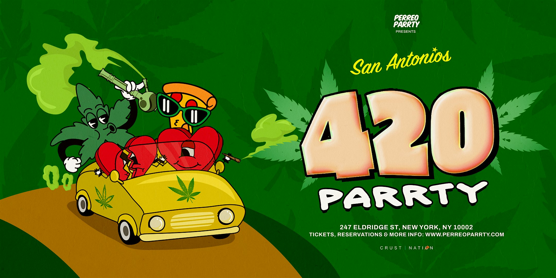 by admin13Feb 420 Parrty – Latin Perreo Party $40 Drink Packages @ Lower East Side NYC at San Antonios – New York, NY 420 Parrty – Latin Perreo Party $40 Drink Packages @ Lower East Side NYC at San Antonios – New York, NY 1 1 people viewed this event. New Series in the spirit of 4/20 Tickets-RSVP Link Date And Time Thursday, April 16th, 2026 09:00 PM (PST) Venue San Antonios Location 247 Eldridge Street, New York, NY 10002 Event Types MusicParty or Social Gathering Event Category New YorkNew York City Share With Friends Facebook Twitter Linkedin Xing Pinterest Share This Post: