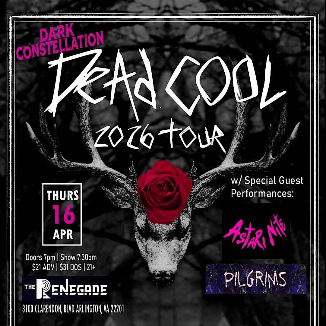 by admin14Feb Dark Constellation Presents: Dead Cool, Astari Nite and Pilgrims at The Renegade VA – Arlington, VA Dark Constellation Presents: Dead Cool, Astari Nite and Pilgrims at The Renegade VA – Arlington, VA 1 1 people viewed this event. Get ready to rock out with Dark Constellation, Dead Cool, Astari Nite, and Pilgrims at an electrifying show you won’t want to miss! Tickets-RSVP Link Date And Time Thursday, April 16th, 2026 11:00 PM (PST) Venue The Renegade VA Location 3100 Clarendon Boulevard, Arlington, VA 22201 Event Types Concert or PerformancePerforming & Visual Arts Event Category Virginia Share With Friends Facebook Twitter Linkedin Xing Pinterest Share This Post: