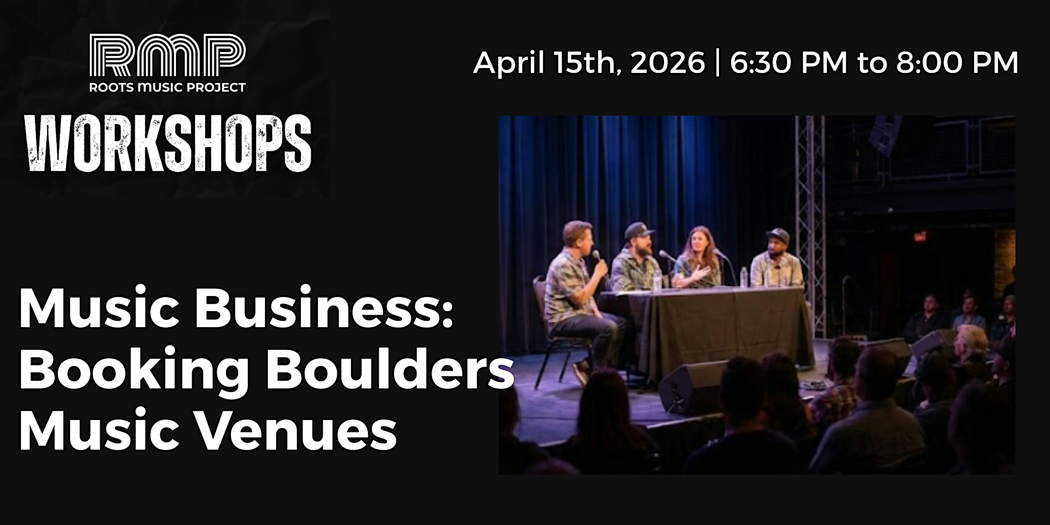 by admin13Feb Roots Music Project Workshop: Booking Boulder’s Music Venues at Roots Music Project – Boulder, CO Roots Music Project Workshop: Booking Boulder’s Music Venues at Roots Music Project – Boulder, CO 1 1 people viewed this event. Get ready to dive into the behind-the-scenes world of booking music venues in Boulder with the Roots Music Project Workshop! Tickets-RSVP Link Date And Time Thursday, April 16th, 2026 12:00 AM (PST) Venue Roots Music Project Location 4747 Pearl, Boulder, CO 80301 Event Types Music Event Category BoulderColorado Share With Friends Facebook Twitter Linkedin Xing Pinterest Share This Post: