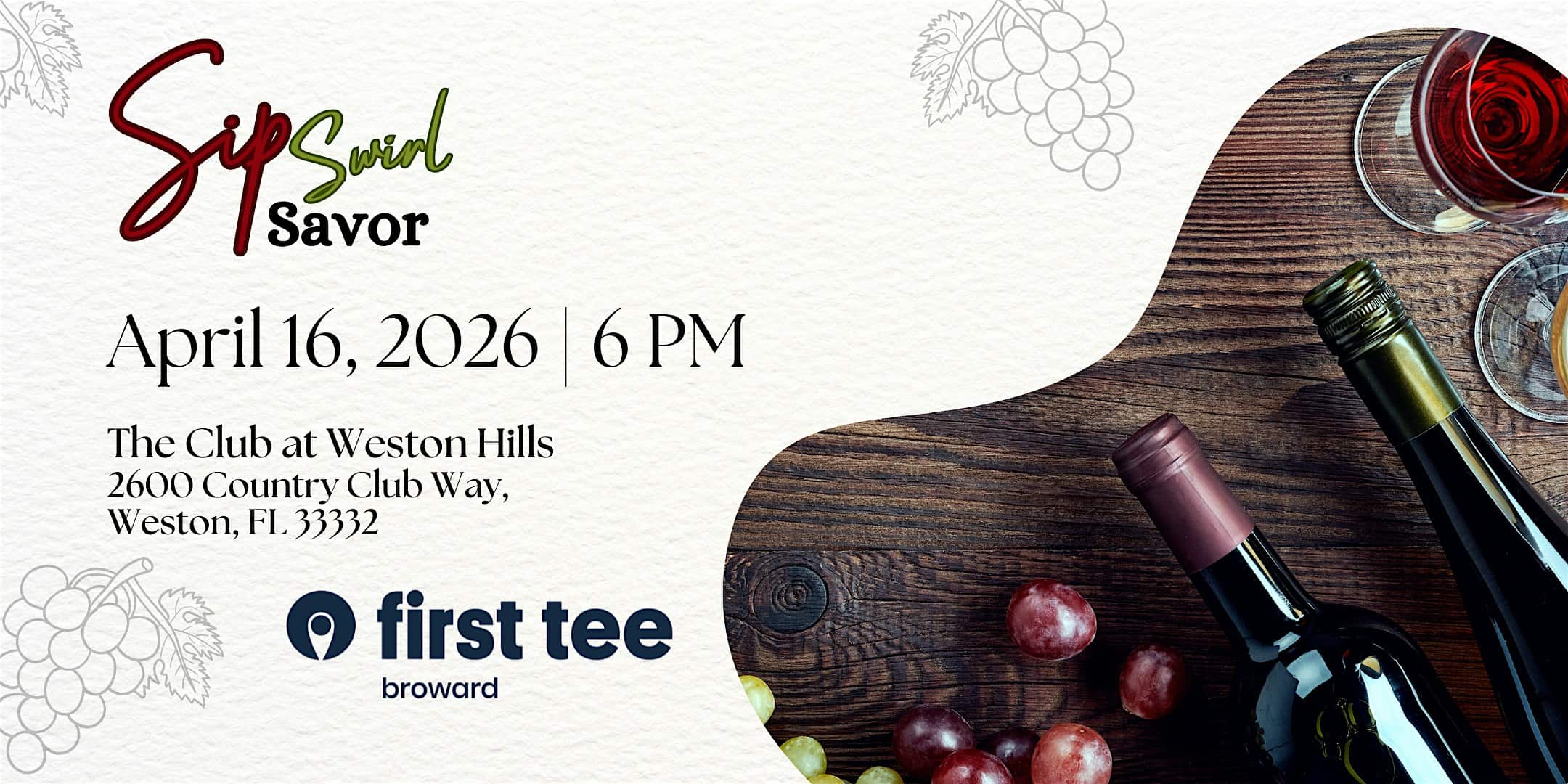 by admin14Feb Sip, Swirl, Savor Wine Tasting Fundraiser Benefitting First Tee – Broward at The Club at Weston Hills – Weston, FL Sip, Swirl, Savor Wine Tasting Fundraiser Benefitting First Tee – Broward at The Club at Weston Hills – Weston, FL 1 1 people viewed this event. Sip, Swirl & Savor at The Club at Weston Hills! Wine tasting fundraiser benefiting First Tee – Broward. Tickets-RSVP Link Date And Time Thursday, April 16th, 2026 10:00 PM (PST) Venue The Club at Weston Hills Location 2600 Country Club Way, Weston, FL 33332 Event Types Food & Drink Event Category FloridaFt Lauderdale Share With Friends Facebook Twitter Linkedin Xing Pinterest Share This Post: