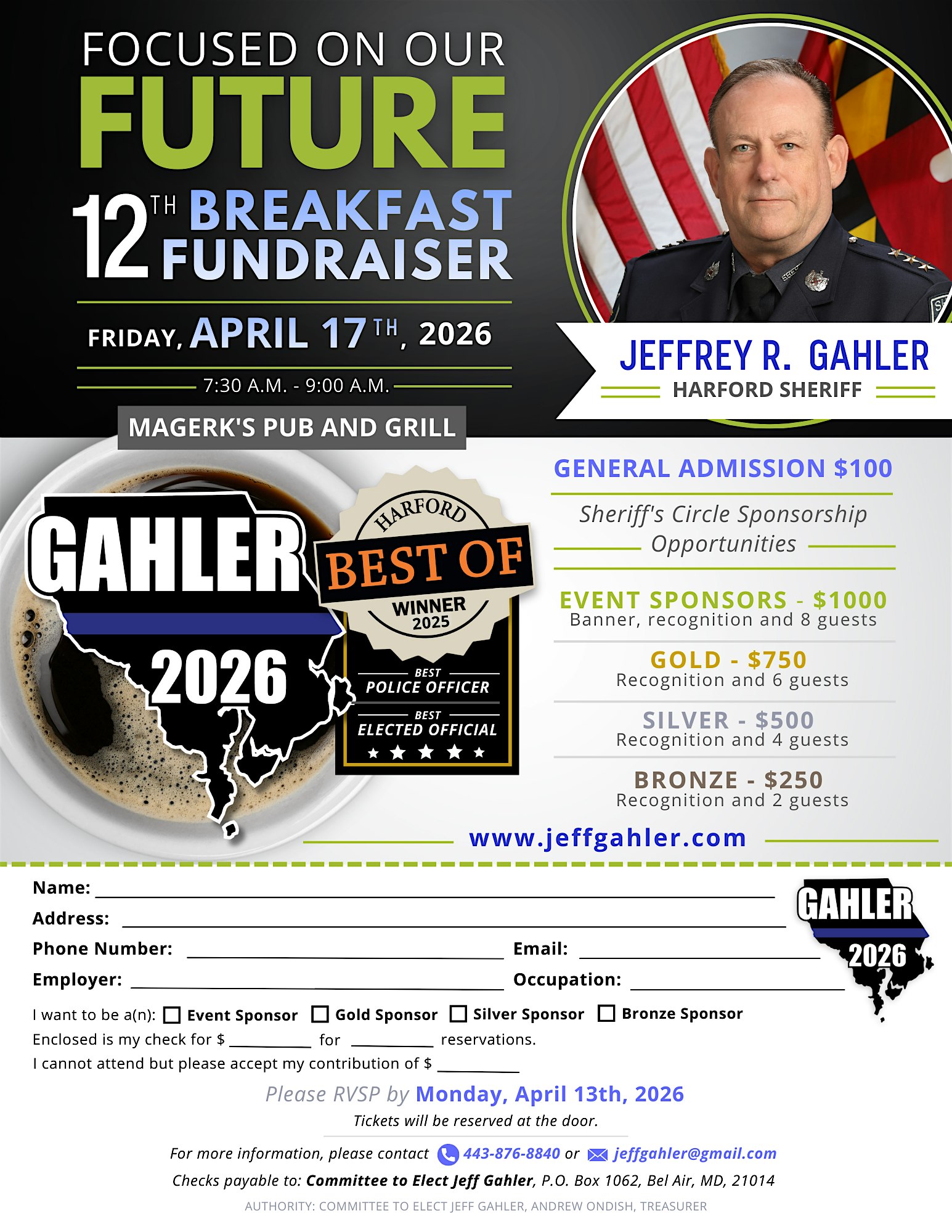 by admin27Feb 12th Annual Breakfast Fundraiser at MaGerk’s BelAir – Bel Air, MD 12th Annual Breakfast Fundraiser at MaGerk’s BelAir – Bel Air, MD 2 2 people viewed this event. Focused on our Future! Tickets-RSVP Link Date And Time Friday, April 17th, 2026 @ 07:00 AM Location 120 S Bond St, Bel Air, MD 21014 Event Types Party or Social Gathering Event Category BaltimoreMaryland Share With Friends Facebook Twitter Linkedin Xing Pinterest Share This Post: