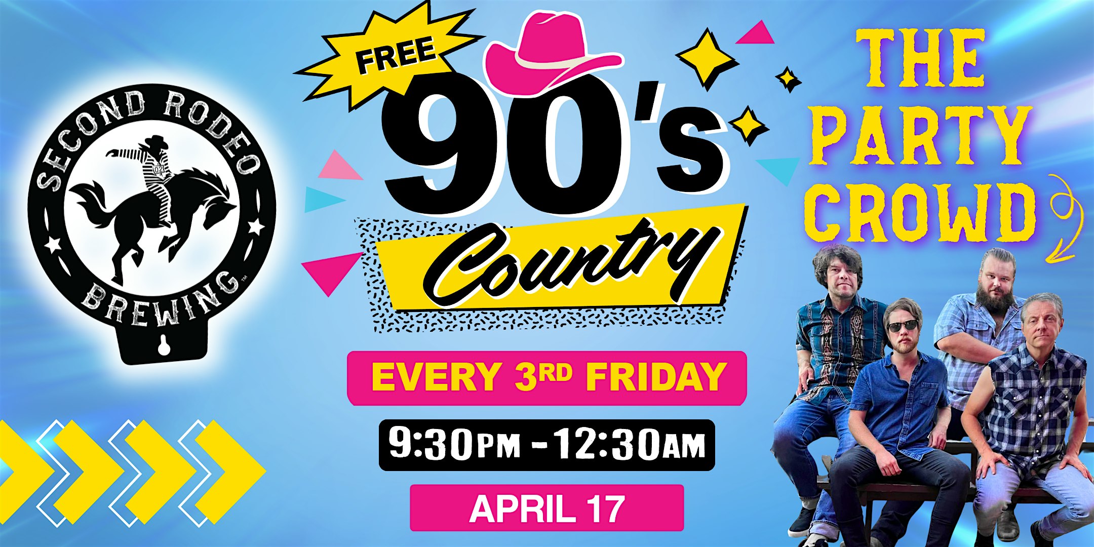 by admin24Feb 90s Country LIVE @ Second Rodeo Brewing | The Party Crowd at Second Rodeo Brewing – Fort Worth, TX 90s Country LIVE @ Second Rodeo Brewing | The Party Crowd at Second Rodeo Brewing – Fort Worth, TX 1 1 people viewed this event. Join us for our 90’s country series – playing LIVE and FREE every 3rd Friday night at Second Rodeo Brewing. Featuring The Party Crowd. Tickets-RSVP Link Date And Time Friday, April 17th, 2026 09:00 PM (PST) Venue Second Rodeo Brewing Location 122 East Exchange Avenue, Fort Worth, TX 76164 Event Types Concert or PerformanceMusic Event Category Fort WorthTexas Share With Friends Facebook Twitter Linkedin Xing Pinterest Share This Post:
