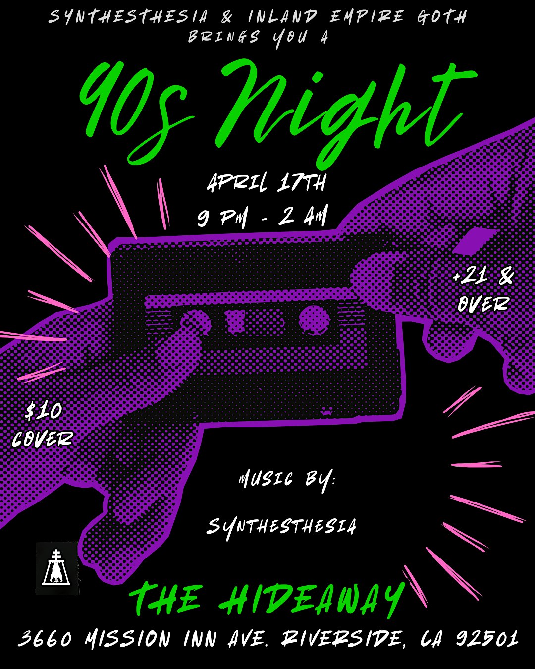 Flashback to the 90’s with Inland Empire Goth and Synthesthesia for this night of flannels and fun! Travel back to the days of CD’s, VHS, an