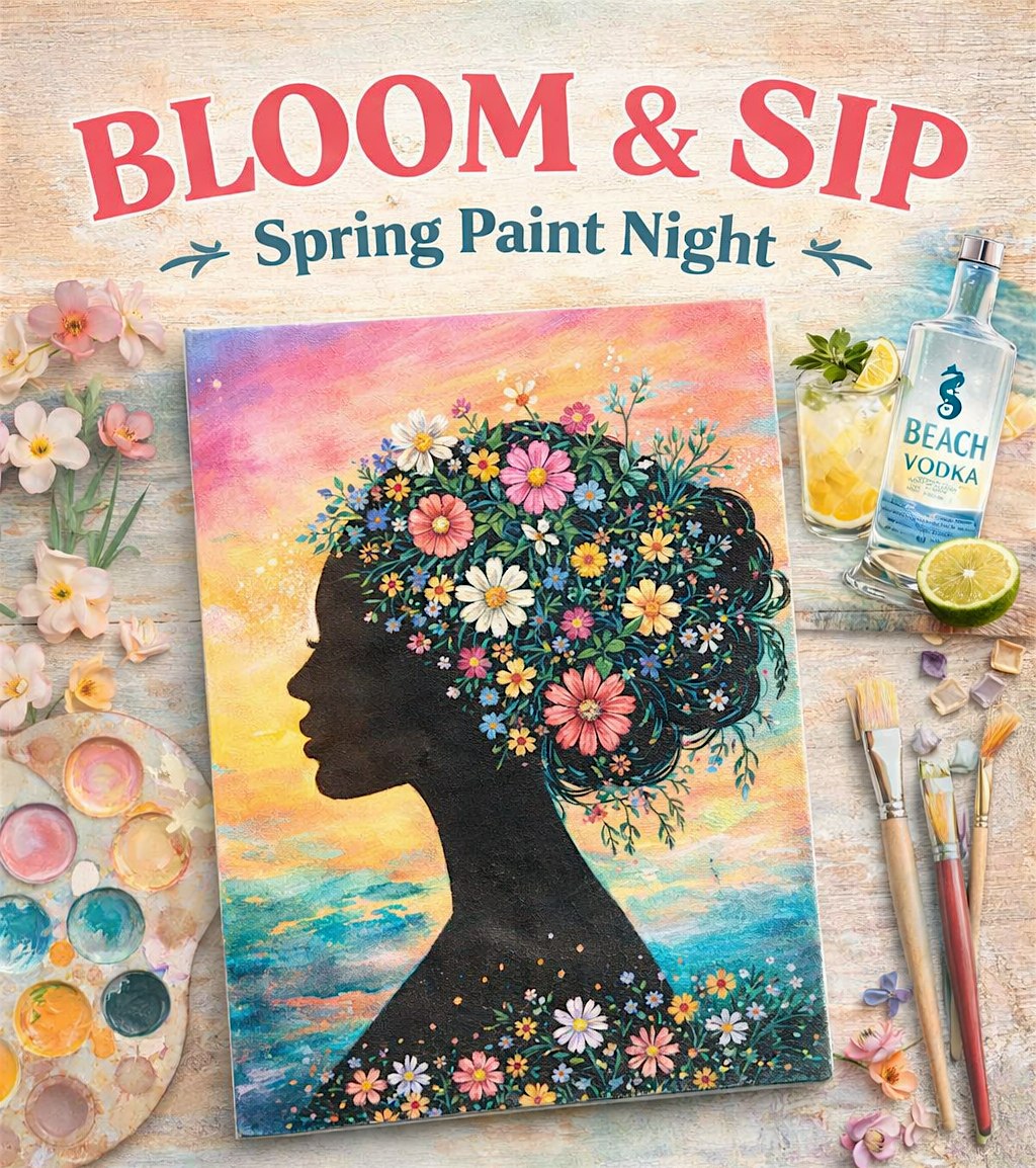 Sip, paint, and let your creativity bloom! Join us for a fun spring paint night with 2 floral silhouette options — no experience needed.