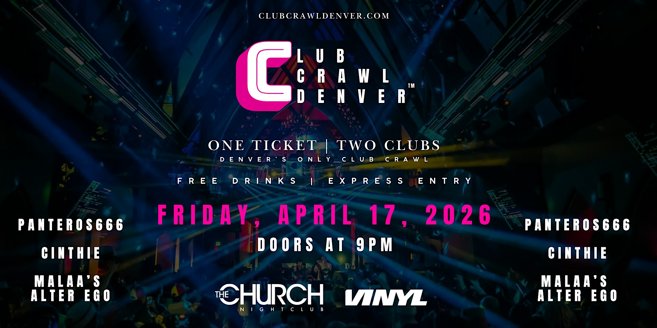 Club Crawl is Denver’s #1 nightlife experience that brings you VIP express entry to both Church Nightclub and Club Vinyl and two complimentary drink tickets, all with one ticket.