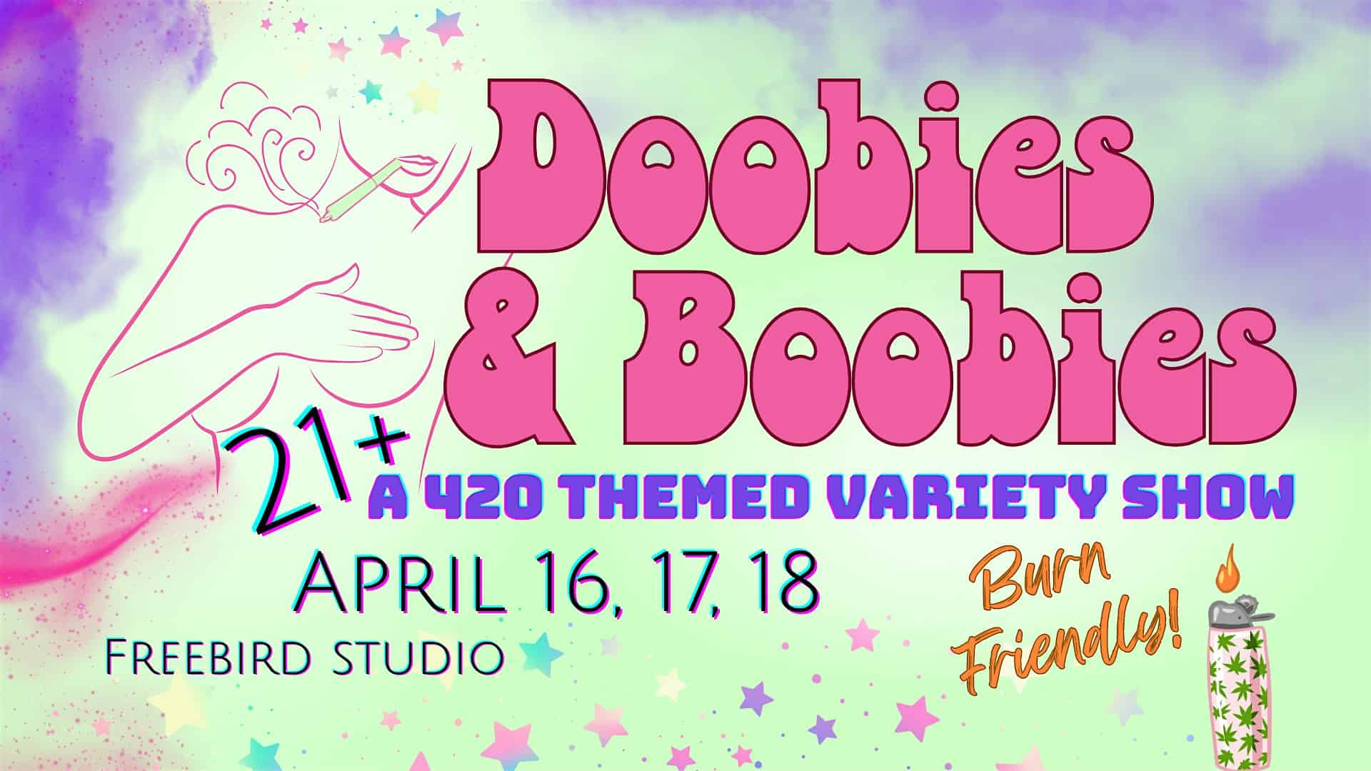 by admin14Feb Doobies & Boobies: A 420 Themed Variety Show at Freebird Yoga Studio – Chico, CA Doobies & Boobies: A 420 Themed Variety Show at Freebird Yoga Studio – Chico, CA 1 1 people viewed this event. Join us for Constellations Aerial Theater’s second production! Grab a joint and be prepared to be dazzled 😉 Tickets-RSVP Link Date And Time Friday, April 17th, 2026 02:00 AM (PST) Venue Freebird Yoga Studio Location 243 West 9th Street, Chico, CA 95928 Event Types Concert or PerformancePerforming & Visual Arts Event Category California Share With Friends Facebook Twitter Linkedin Xing Pinterest Share This Post: