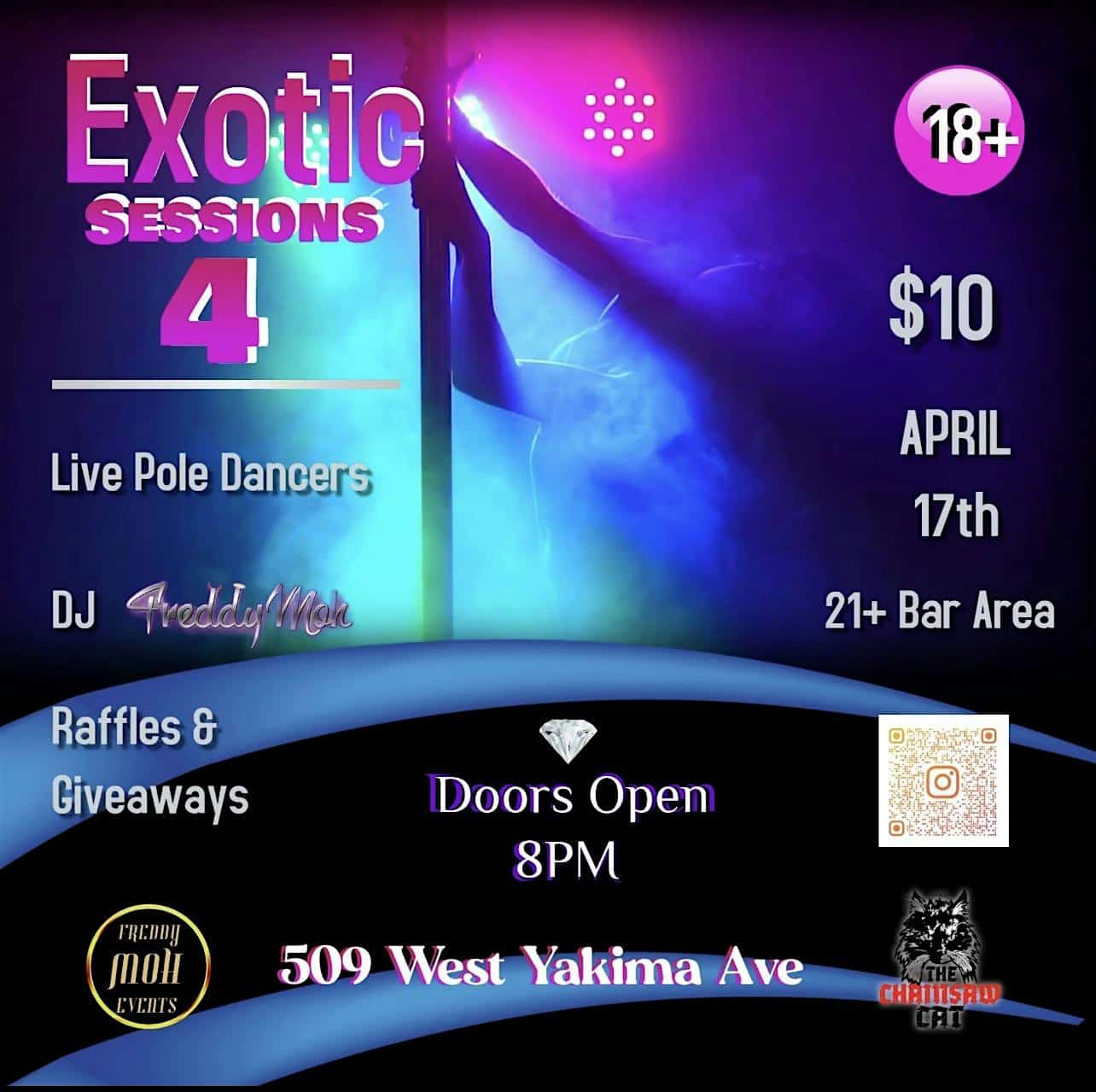 by admin23Feb Exotic Sessions 4: Live Pole Dancer and Dance party at The Chainsaw Cat – Yakima, WA Exotic Sessions 4: Live Pole Dancer and Dance party at The Chainsaw Cat – Yakima, WA 2 2 people viewed this event. Come on down to the chainsaw cat and see Yakima’s top pole dancers! With giveaways, contests, and a live DJ its a party you need to be at! Tickets-RSVP Link Date And Time Friday, April 17th, 2026 08:00 PM (PST) Venue The Chainsaw Cat Location 509 West Yakima Avenue, Yakima, WA 98902 Event Types Party or Social GatheringPerforming & Visual Arts Event Category Washington Share With Friends Facebook Twitter Linkedin Xing Pinterest Share This Post: