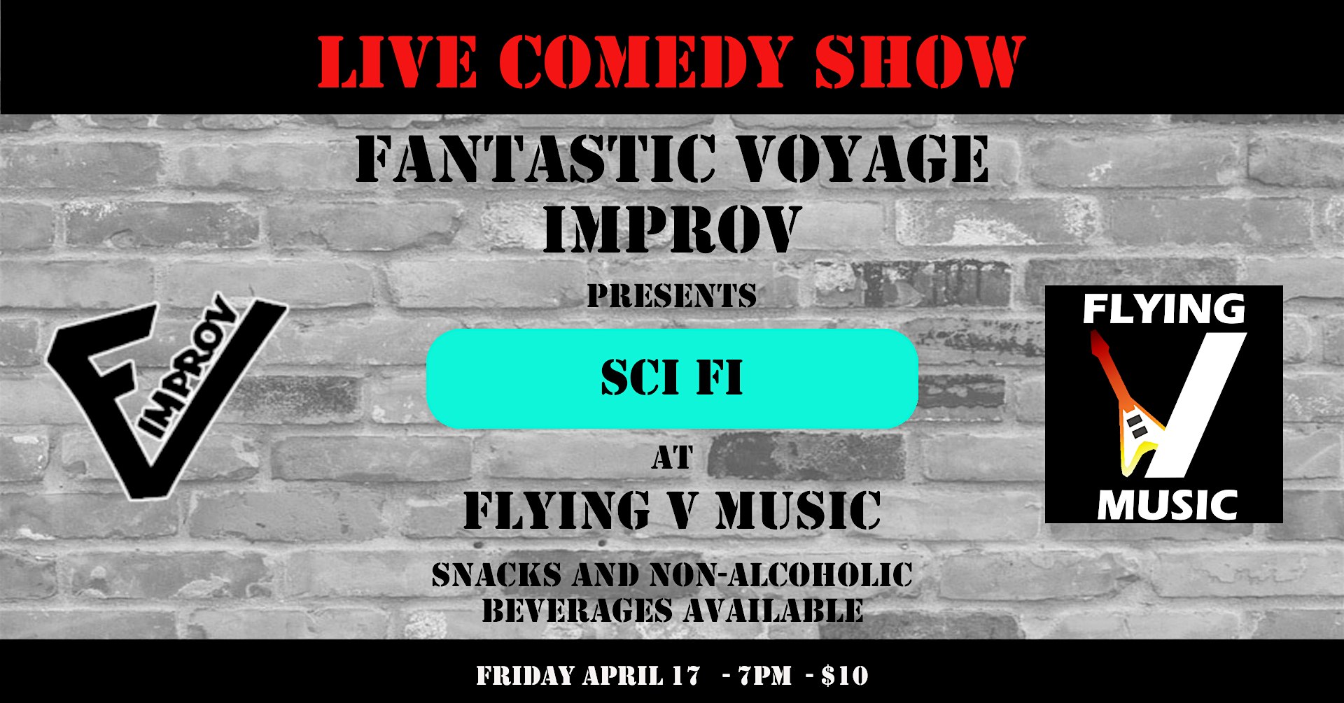 Flying V – the Sci Fi Show at Flying V Music – Robbinsdale, MN Flying V – the Sci Fi Show at Flying V Music – Robbinsdale, MN 2 2 people viewed this event. 90 minutes of improv fun and games, with a nerdy twist! Tickets-RSVP Link Register for event Date And Time Friday, April 17th, 2026 @ 07:00 PM Location 4130 Lakeview Avenue North, Robbinsdale, MN 55422 Event Types Concert or PerformancePerforming & Visual Arts Event Category MinneapolisMinnesota Share With Friends Facebook Twitter Linkedin Xing Pinterest