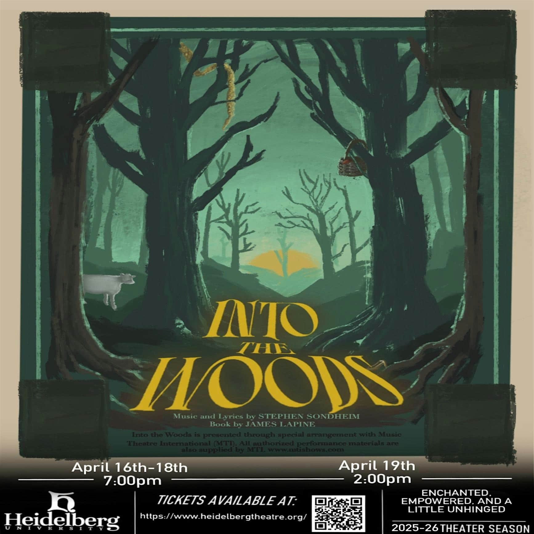 by admin14Feb Into the Woods at Heidelberg University/Gundlach Theatre – Tiffin, OH Into the Woods at Heidelberg University/Gundlach Theatre – Tiffin, OH 1 1 people viewed this event. Heidelberg School of Music and Theatre invites you to a spellbinding production of Stephen Sondheim and James Lapine’s Into the Woods. Tickets-RSVP Link Date And Time Friday, April 17th, 2026 11:00 PM (PST) Venue Heidelberg University/Gundlach Theatre Location 318 East Perry Street, Tiffin, OH 44883 Event Types Concert or PerformancePerforming & Visual Arts Event Category Ohio Share With Friends Facebook Twitter Linkedin Xing Pinterest Share This Post: