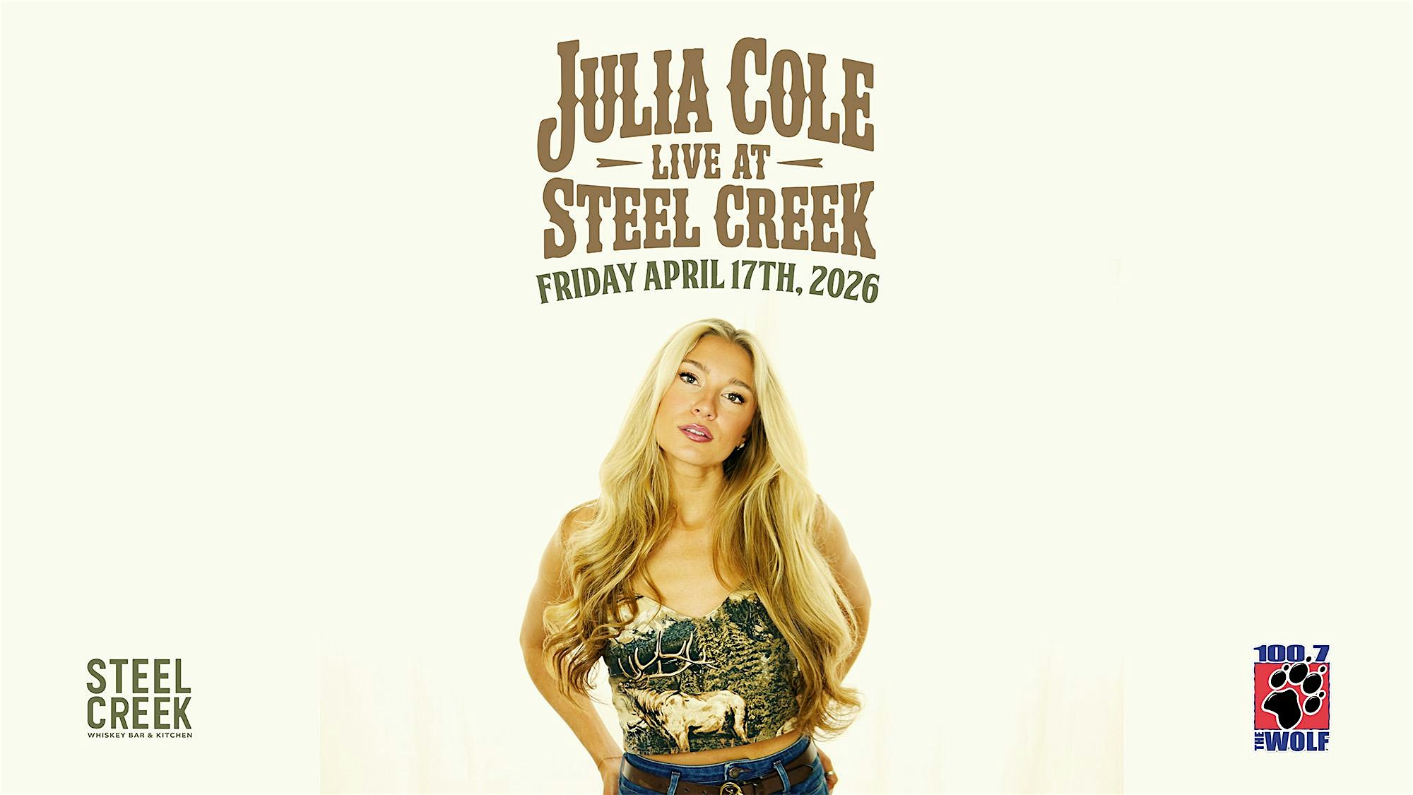 by admin24Feb Julia Cole live at Steel Creek at Steel Creek – Tacoma, WA Julia Cole live at Steel Creek at Steel Creek – Tacoma, WA 3 3 people viewed this event. Presented by 100.7 The Wolf & Steel Creek Tickets-RSVP Link Date And Time Friday, April 17th, 2026 07:00 PM (PST) Venue Steel Creek Location 1114 Broadway, Tacoma, WA 98402 Event Types Concert or PerformanceMusic Event Category TacomaWashington Share With Friends Facebook Twitter Linkedin Xing Pinterest Share This Post: