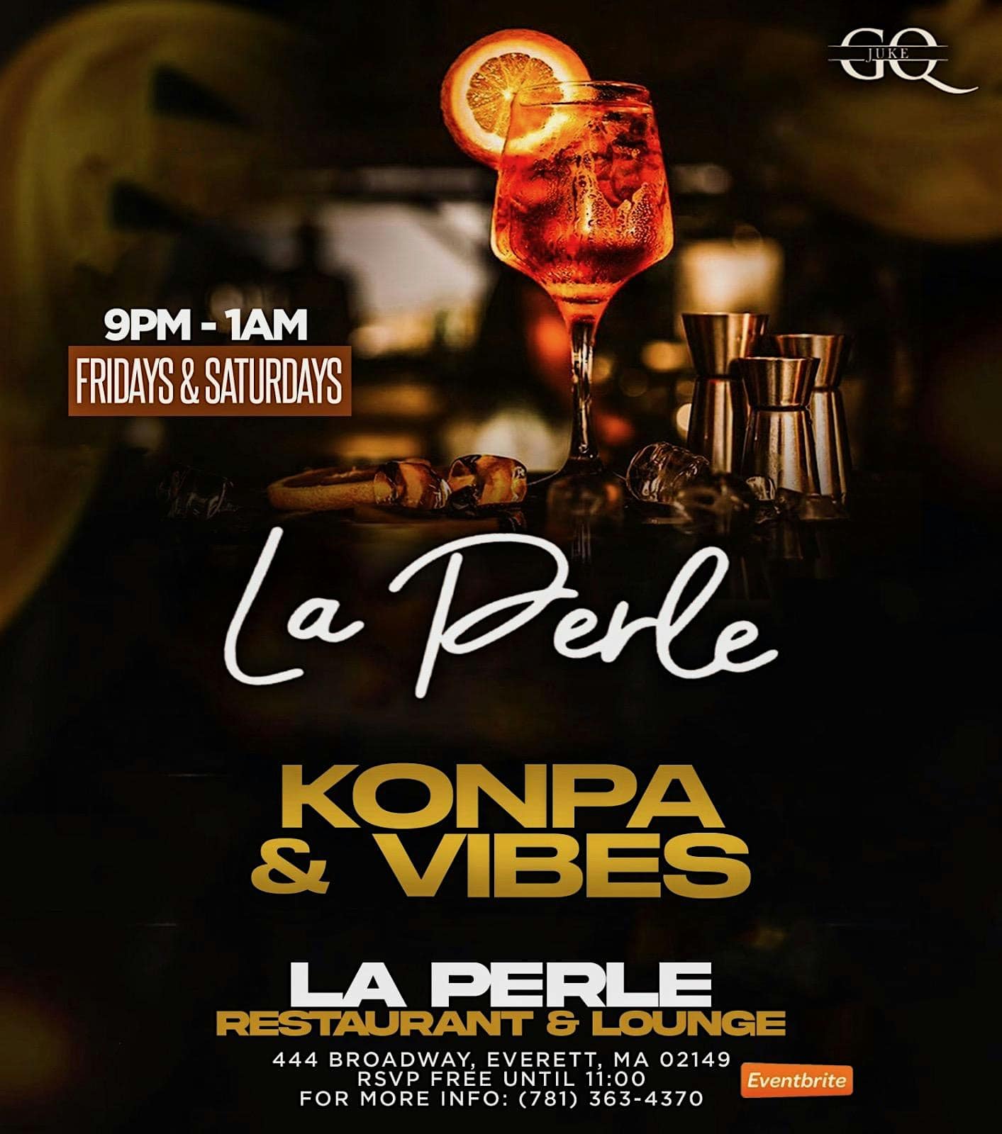 by admin23Feb Konpa & Vibes at La Perle Restaurant & Lounge – Everett, MA Konpa & Vibes at La Perle Restaurant & Lounge – Everett, MA 2 2 people viewed this event. A weekly konpa experience bringing music, culture, and good vibes to your weekend nights. Tickets-RSVP Link Date And Time Friday, April 17th, 2026 09:00 PM (PST) Venue La Perle Restaurant & Lounge Location 444 Broadway, Everett, MA 2149 Event Types MusicParty or Social Gathering Event Category Massachusetts Share With Friends Facebook Twitter Linkedin Xing Pinterest Share This Post: