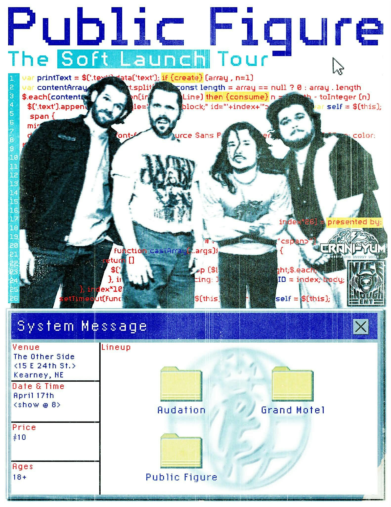 by admin24Feb Public Figure at The Other Side – Kearney, NE Public Figure at The Other Side – Kearney, NE 2 2 people viewed this event. Public Figure – The Soft Launch Tour Tickets-RSVP Link Date And Time Friday, April 17th, 2026 08:00 PM (PST) Venue The Other Side Location 15 E. 24th Street, Kearney, NE 68847 Event Types Concert or PerformanceMusic Event Category Nebraska Share With Friends Facebook Twitter Linkedin Xing Pinterest Share This Post: