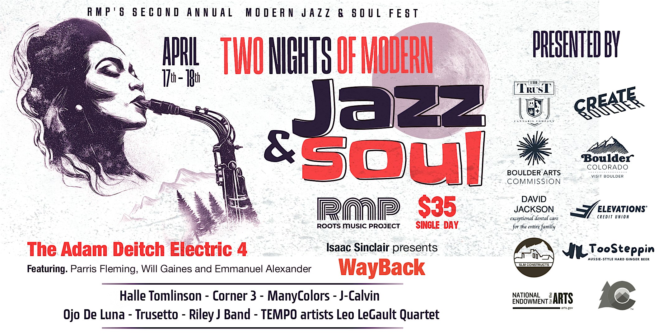 by admin27Feb Roots Music Project’s 2nd Annual Modern Jazz and Soul Fest (Day 1) at Roots Music Project – Boulder, CO Roots Music Project’s 2nd Annual Modern Jazz and Soul Fest (Day 1) at Roots Music Project – Boulder, CO 4 4 people viewed this event. Boulder’s 2nd annual Modern Jazz & Soul Fest: 2 days, 10 bands, blending jazz, soul & improvisation with top national, regional & youth acts Tickets-RSVP Link Date And Time Friday, April 17th, 2026 06:00 PM (PST) Venue Roots Music Project Location 4747 Pearl, Boulder, CO 80301 Event Types Festival or FairMusic Event Category BoulderColorado Share With Friends Facebook Twitter Linkedin Xing Pinterest Share This Post:
