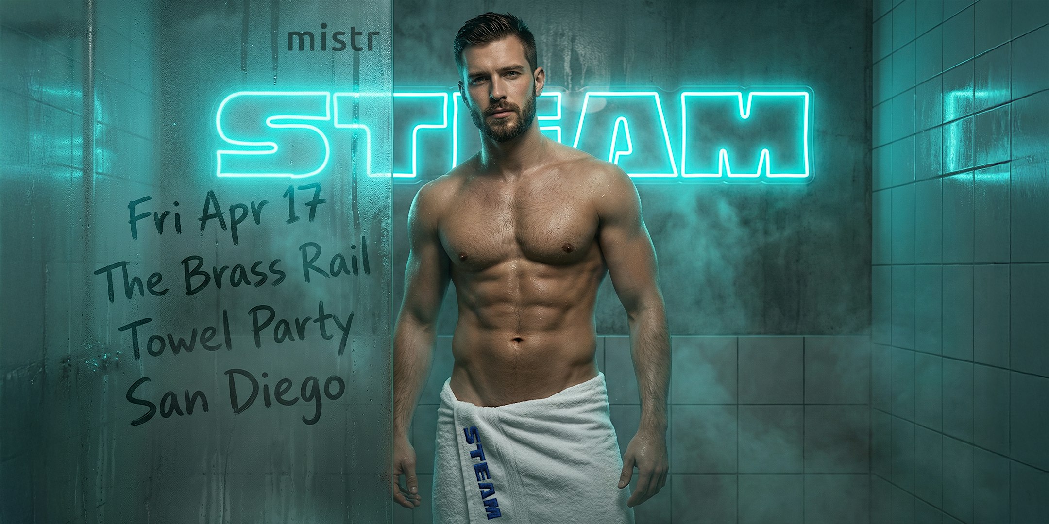 by admin27Feb STEAM Towel Party San Diego at The Brass Rail – San Diego, CA STEAM Towel Party San Diego at The Brass Rail – San Diego, CA 2 2 people viewed this event. On Friday, April 17, we’re bringing the heat back to The Brass Rail for another night of sweat, sound, and stripped-down energy. Tickets-RSVP Link Date And Time Friday, April 17th, 2026 10:00 PM (PST) Venue The Brass Rail Location 3796 Fifth Avenue, San Diego, CA 92103 Event Types MusicParty or Social Gathering Event Category CaliforniaSan Diego Share With Friends Facebook Twitter Linkedin Xing Pinterest Share This Post: