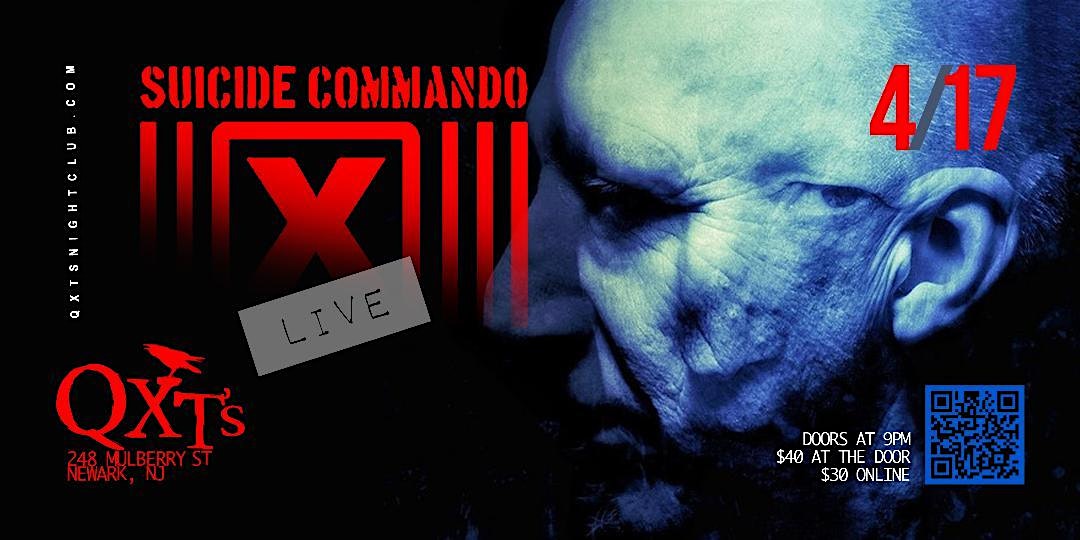 by admin24Feb SUICIDE COMMANDO – Last show ever in the USA (East Coast) at QXT’s Nightclub – Newark, NJ SUICIDE COMMANDO – Last show ever in the USA (East Coast) at QXT’s Nightclub – Newark, NJ 2 2 people viewed this event. SUICIDE COMMANDO – Last show ever in the USA (East Coast) Tickets-RSVP Link Date And Time Friday, April 17th, 2026 09:00 PM (PST) Venue QXT's Nightclub Location 248 Mulberry Street, Newark, NJ 7102 Event Types Concert or PerformanceMusic Event Category New Jersey Share With Friends Facebook Twitter Linkedin Xing Pinterest Share This Post: