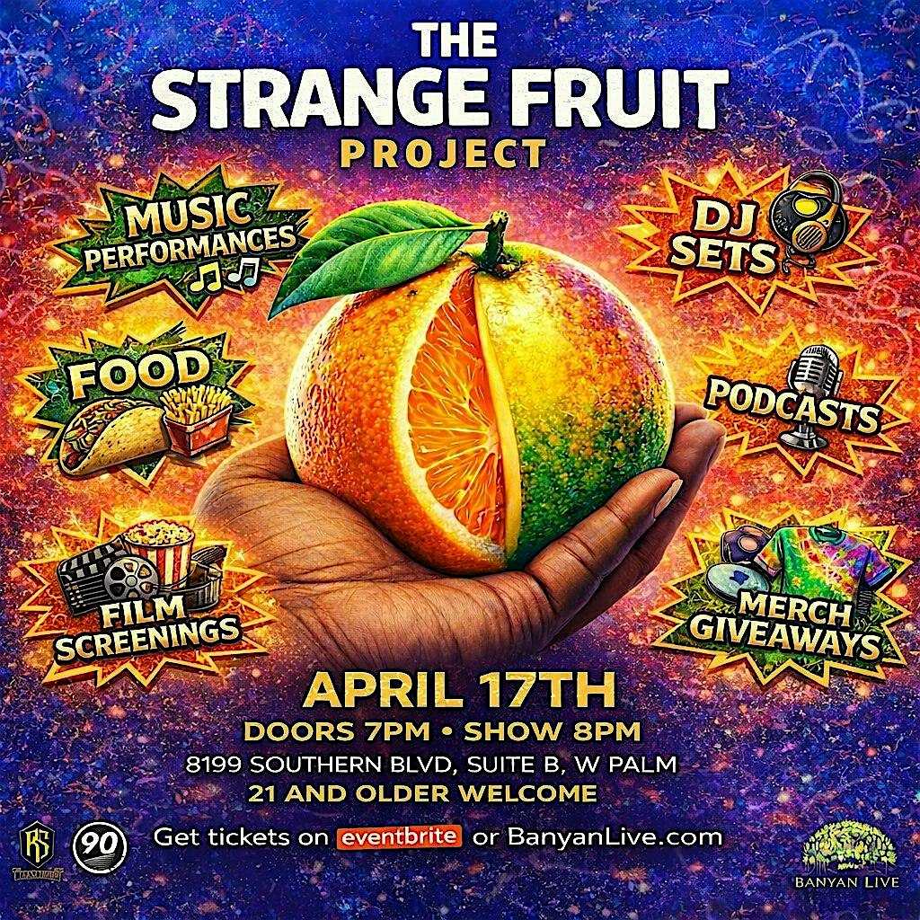 by admin24Feb The Strange Fruit Project at The Banyan Live – West Palm Beach, FL The Strange Fruit Project at The Banyan Live – West Palm Beach, FL 1 1 people viewed this event. The Strange Fruit Project: a black tie experience where film, music and art collide! Tickets-RSVP Link Date And Time Friday, April 17th, 2026 07:00 PM (PST) Venue The Banyan Live Location 8199 Southern Boulevard, West Palm Beach, FL 33411 Event Types Concert or PerformanceMusic Event Category Florida Share With Friends Facebook Twitter Linkedin Xing Pinterest Share This Post: