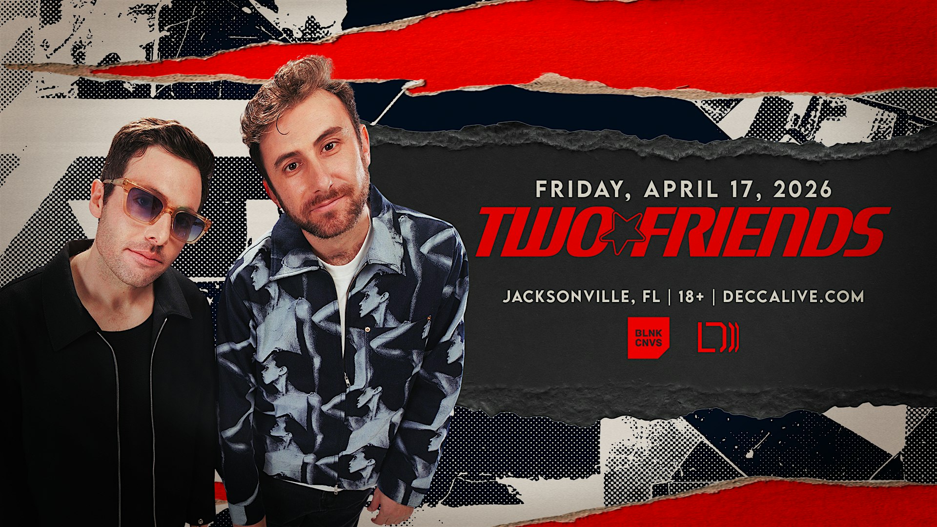 by admin24Feb Two Friends @ Decca Live at Decca Live – Jacksonville, FL Two Friends @ Decca Live at Decca Live – Jacksonville, FL 2 2 people viewed this event. Two Friends @ Decca Live Tickets-RSVP Link Date And Time Friday, April 17th, 2026 10:00 PM (PST) Venue Decca Live Location 323 East Bay Street, Jacksonville, FL 32202 Event Types Concert or PerformanceMusic Event Category FloridaJacksonville Share With Friends Facebook Twitter Linkedin Xing Pinterest Share This Post: