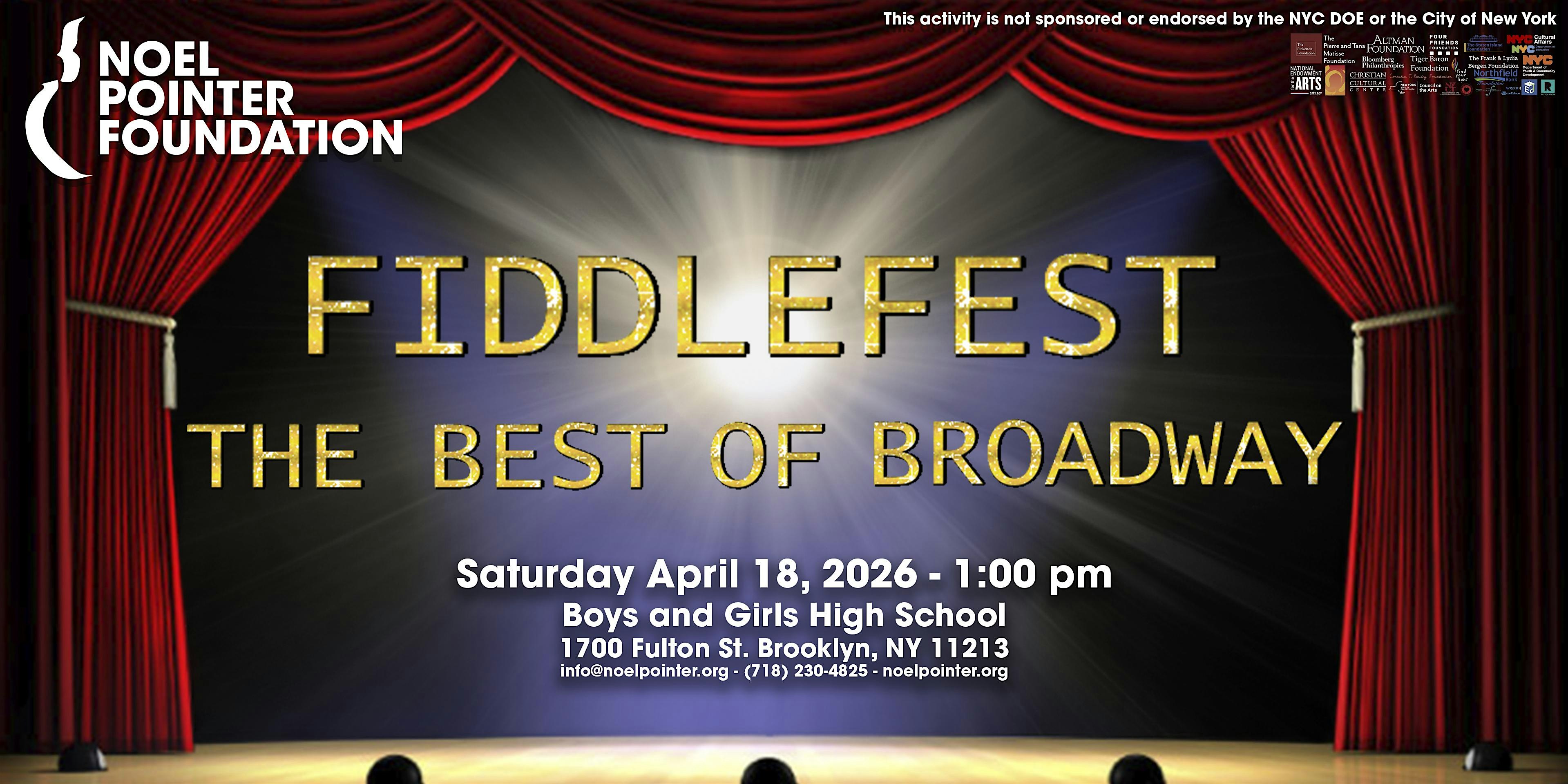 by admin27Feb 2026 FiddleFest: The Best of Broadway! at K455 Boys and Girls High School – Brooklyn, NY 2026 FiddleFest: The Best of Broadway! at K455 Boys and Girls High School – Brooklyn, NY 2 2 people viewed this event. NPF’s annual FiddleFest Concert, featuring our In-School and In-Foundation Group Classes performing songs together from all over NYC! Tickets-RSVP Link Date And Time Saturday, April 18th, 2026 @ 01:00 PM Location 1700 Fulton Street, Brooklyn, NY 11213 Event Types Concert or PerformanceMusic Event Category New York Share With Friends Facebook Twitter Linkedin Xing Pinterest Share This Post: