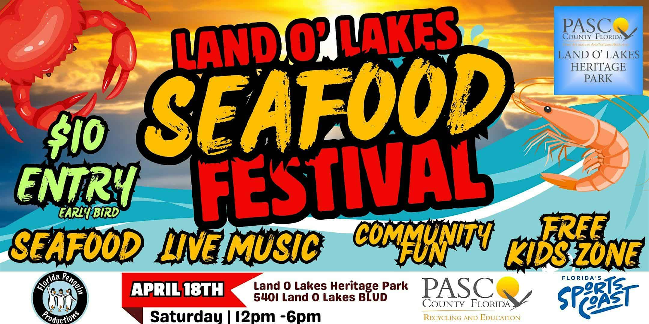 by admin14Feb 2nd Annual Land O Lakes Seafood Festival at Land O’ Lakes Heritage Park – Land O’ Lakes, FL 2nd Annual Land O Lakes Seafood Festival at Land O’ Lakes Heritage Park – Land O’ Lakes, FL 1 1 people viewed this event. Seafood, Live Music, and Fun for all ages!!! Enjoy the Spring Community vibes in Land O Lakes, FL Tickets-RSVP Link Date And Time Saturday, April 18th, 2026 04:00 PM (PST) Venue Land O' Lakes Heritage Park Location 5401 Land O' Lakes Boulevard, Land O' Lakes, FL 34639 Event Types Festival or FairFood & Drink Event Category Florida Share With Friends Facebook Twitter Linkedin Xing Pinterest Share This Post: