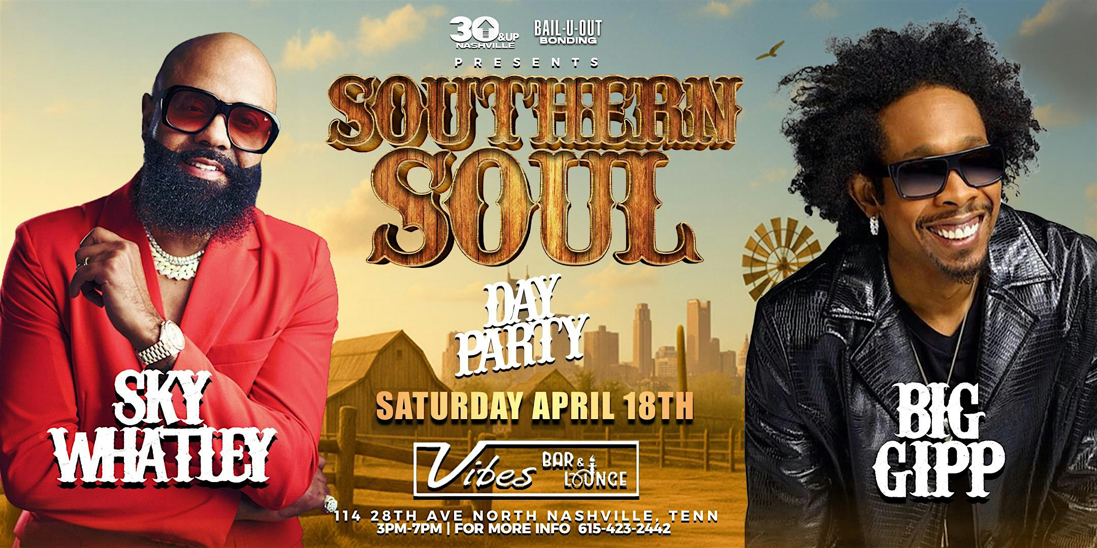 Join C- Wiz & Darryl Jaye on April 18th from 3pm-7pm @ VIBES Bar & Lounge for the 30 & Up Nashville Southern Soul Day Party!