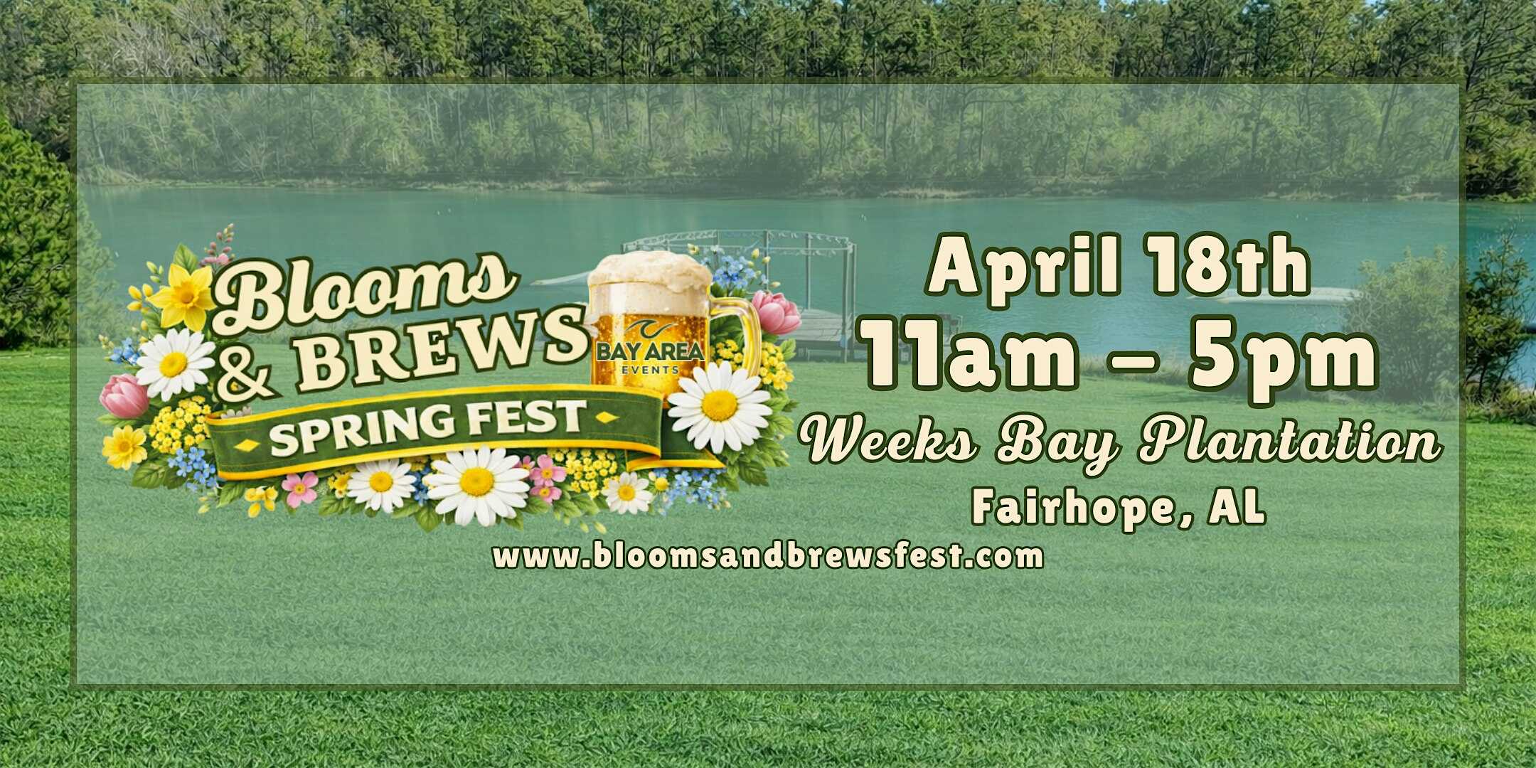 by admin14Feb Blooms & Brews Spring Fest at Weeks Bay Plantation, Inc. – Fairhope, AL Blooms & Brews Spring Fest at Weeks Bay Plantation, Inc. – Fairhope, AL 1 1 people viewed this event. Join us for a full-day festival with live music, craft brews, vendors, family fun, and a 21+ After Dark concert in Fairhope, AL. Tickets-RSVP Link Date And Time Saturday, April 18th, 2026 03:00 PM (PST) Venue Weeks Bay Plantation, Inc. Location 12562 Mary Ann Beach Road, Fairhope, AL 36532 Event Types Festival or FairFood & Drink Event Category AlabamaMobile Share With Friends Facebook Twitter Linkedin Xing Pinterest Share This Post: