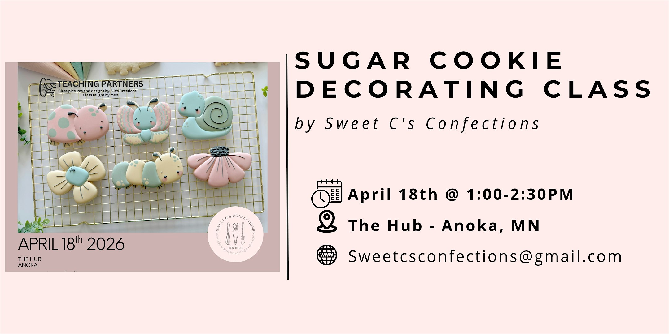 by admin24Feb Blooms & Bugs Sugar Cookie Decorating Class in Anoka, MN! at The Hub LLC – Anoka, MN Blooms & Bugs Sugar Cookie Decorating Class in Anoka, MN! at The Hub LLC – Anoka, MN 2 2 people viewed this event. Join me on Saturday April 18th to get into the Spring spirit with our Blooms & Bugs themed Sugar Cookie Decorating Class. Tickets-RSVP Link Date And Time Saturday, April 18th, 2026 12:00 PM (PST) Venue The Hub LLC Location 623 East Main Street, Anoka, MN 55303 Event Types Food & Drink Event Category MinneapolisMinnesota Share With Friends Facebook Twitter Linkedin Xing Pinterest Share This Post: