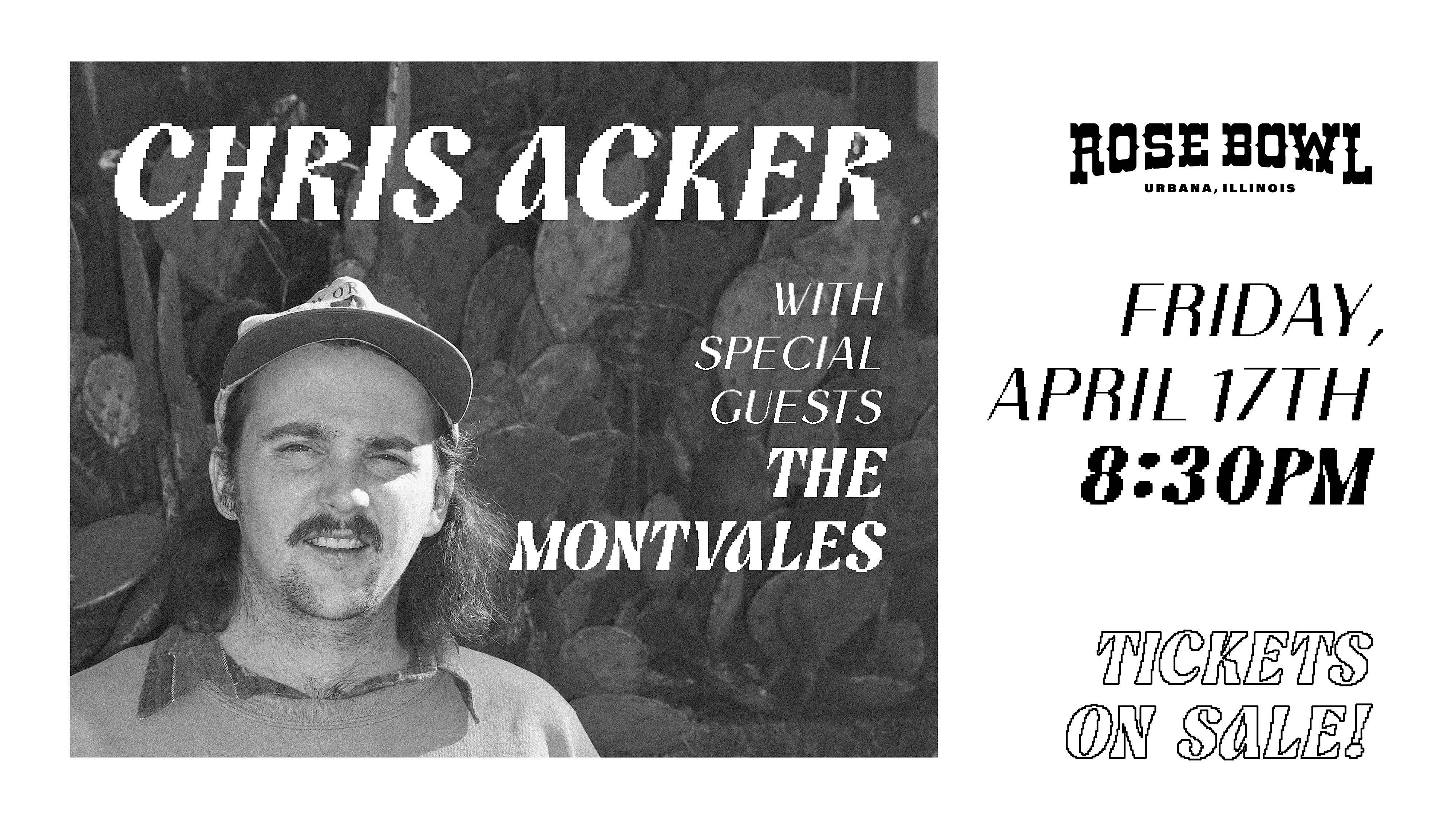 by admin13Feb Chris Acker & The Growing Boys + The Montvales at The Rose Bowl Tavern – Urbana, IL Chris Acker & The Growing Boys + The Montvales at The Rose Bowl Tavern – Urbana, IL 2 2 people viewed this event. Chris Acker makes his debut at the Rose Bowl Tavern with his band The Growing Boys and special guests, The Montvales – in downtown Urbana. Tickets-RSVP Link Date And Time Saturday, April 18th, 2026 01:00 AM (PST) Venue The Rose Bowl Tavern Location 106 North Race Street, Urbana, IL 61801 Event Types Concert or PerformanceMusic Event Category Illinois Share With Friends Facebook Twitter Linkedin Xing Pinterest Share This Post: