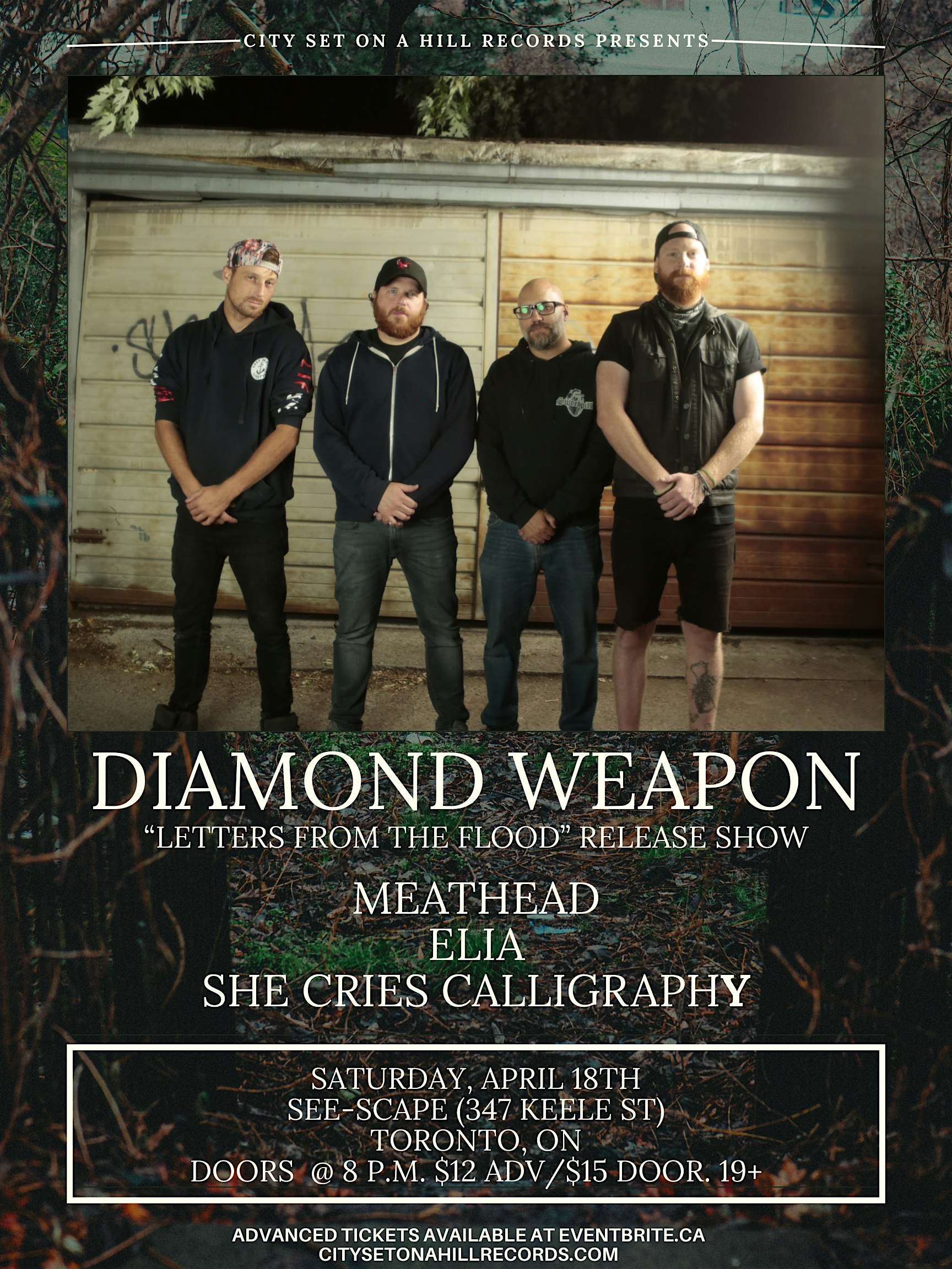 by admin24Feb Diamond Weapon “Letters From the Flood” Release Show at See-Scape – Toronto, Canada Diamond Weapon “Letters From the Flood” Release Show at See-Scape – Toronto, Canada 2 2 people viewed this event. Get ready to rock out live as Diamond Weapon drops “Letters From the Flood” in an epic release show! Tickets-RSVP Link Date And Time Saturday, April 18th, 2026 08:00 PM (PST) Venue See-Scape Location 347 Keele Street, Toronto, Canada M6P 2K6 Event Types Concert or PerformanceMusic Event Category CanadaToronto Share With Friends Facebook Twitter Linkedin Xing Pinterest Share This Post: