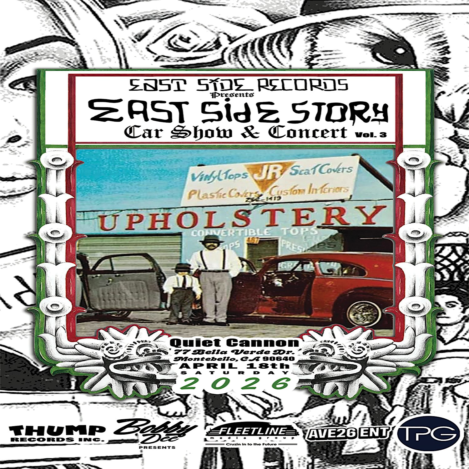 by admin27Feb East Side Story CONCERT & Car Show EAST L.A. at Quiet Cannon – Montebello, CA East Side Story CONCERT & Car Show EAST L.A. at Quiet Cannon – Montebello, CA 2 2 people viewed this event. Cruise through and jam out to live tunes at this epic concert and car show combo. Tickets-RSVP Link Date And Time Saturday, April 18th, 2026 @ 02:00 PM Location 77 Bella Verde Drive, Montebello, CA 90640 Event Types Concert or PerformanceMusic Event Category California Share With Friends Facebook Twitter Linkedin Xing Pinterest Share This Post: