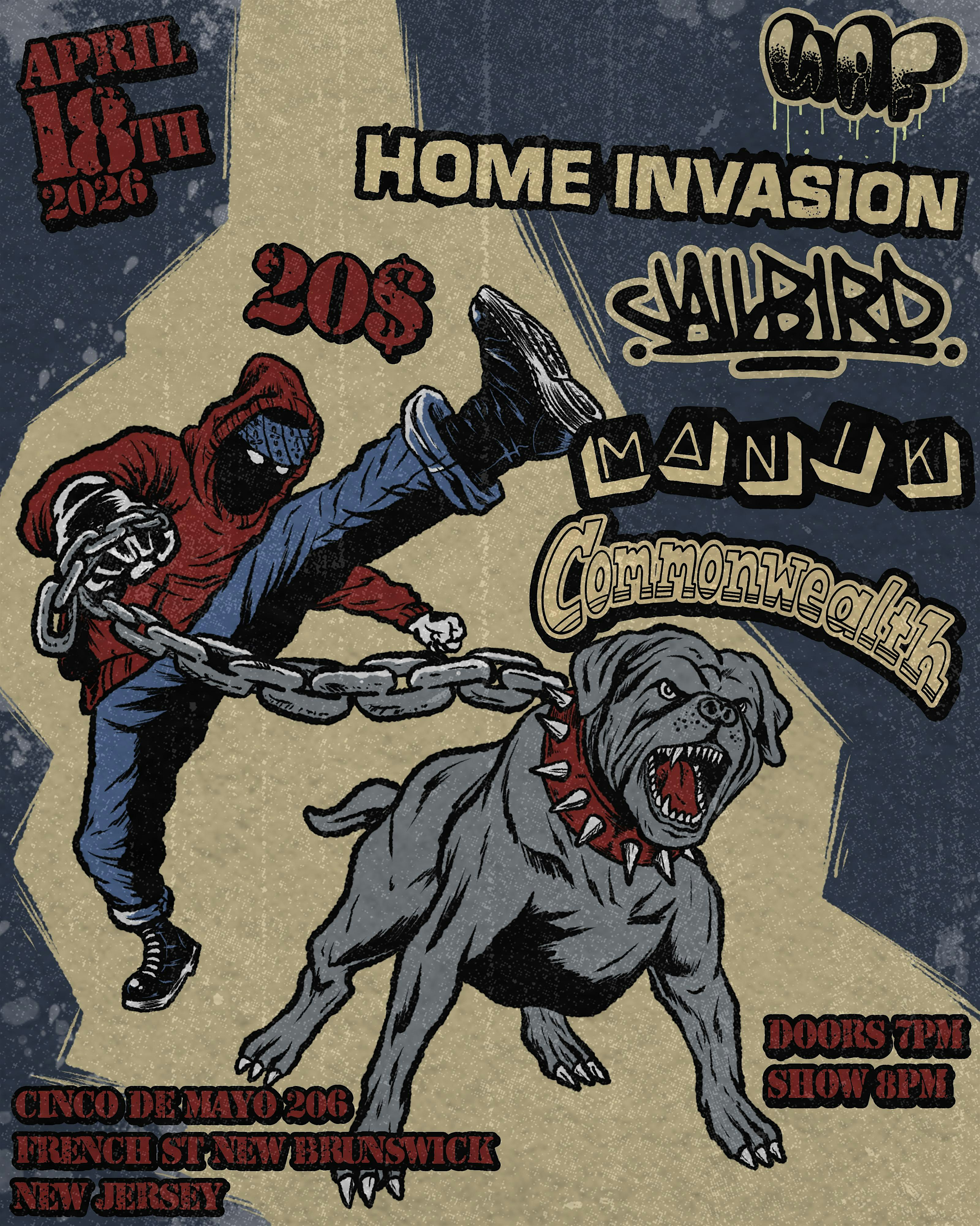 by admin24Feb Home Invasion at Cinco de Mayo – New Brunswick, NJ Home Invasion at Cinco de Mayo – New Brunswick, NJ 1 1 people viewed this event. Home Invasion, Jailbird, Manik, commonwealth sound by Fro Hawkins Tickets-RSVP Link Date And Time Saturday, April 18th, 2026 07:00 PM (PST) Venue Cinco de Mayo Location 206 French Street, New Brunswick, NJ 8901 Event Types Concert or PerformanceMusic Event Category New BrunswickNew Jersey Share With Friends Facebook Twitter Linkedin Xing Pinterest Share This Post:
