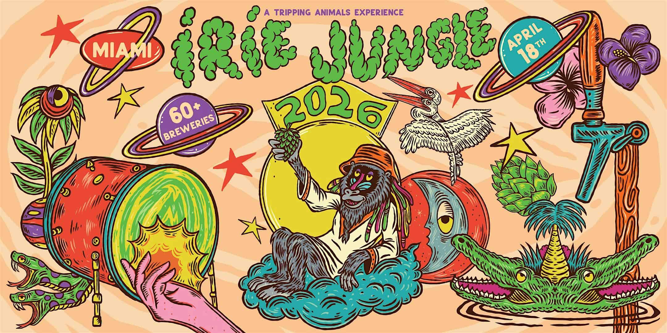 by admin14Feb IRIE JUNGLE FESTIVAL 2026: A Tripping Animals Experience at Tripping Animals Brewing Co. – Doral, FL IRIE JUNGLE FESTIVAL 2026: A Tripping Animals Experience at Tripping Animals Brewing Co. – Doral, FL 2 2 people viewed this event. A curated multi-sensory beer tasting experience featuring 60+ breweries, art, music, and more — hosted by Tripping Animals. Tickets-RSVP Link Date And Time Saturday, April 18th, 2026 05:00 PM (PST) Venue Tripping Animals Brewing Co. Location 2685 Northwest 105th Avenue, Doral, FL 33172 Event Types Festival or FairFood & Drink Event Category FloridaMiami Share With Friends Facebook Twitter Linkedin Xing Pinterest Share This Post: