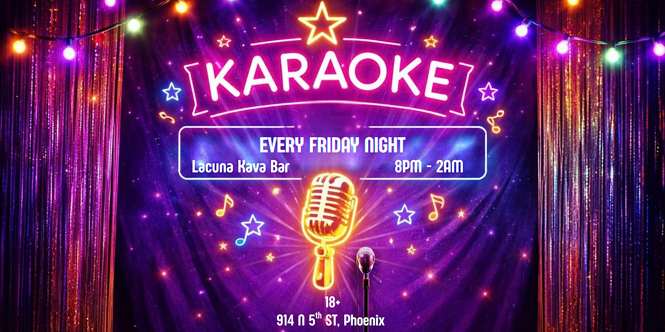 KARAOKE NIGHT at Lacuna Downtown at Lacuna Phoenix – Phoenix, AZ KARAOKE NIGHT at Lacuna Downtown at Lacuna Phoenix – Phoenix, AZ 3 3 people viewed this event. Come sing. Come chill. Come do something different, somewhere different. 18+, out-side food welcome, smoke friendly backyard. Tickets-RSVP Link Register for event Date And Time Saturday, April 18th, 2026 @ 08:00 PM Location 914 North 5th Street, Phoenix, AZ 85004 Event Types MusicParty or Social Gathering Event Category ArizonaPhoenix Share With Friends Facebook Twitter Linkedin Xing Pinterest