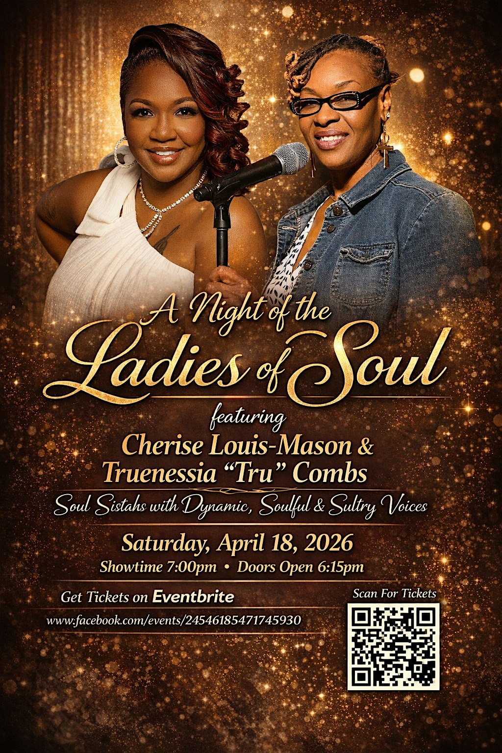 Ladies of Soul at St. Nicholas Parish Center – St. Louis, MO Ladies of Soul at St. Nicholas Parish Center – St. Louis, MO 2 2 people viewed this event. ONE NIGHT ONLY!!!! The dynamic, sultry and soulful voices of 2 of St. Louis most talented Soul Sistahs. Tell a friend, Bring a friend Tickets-RSVP Link Register for event Date And Time Saturday, April 18th, 2026 @ 07:00 PM Location 1805 Lucas Avenue, St. Louis, MO 63103 Event Types Concert or PerformanceMusic Event Category MissouriSt. Louis Share With Friends Facebook Twitter Linkedin Xing Pinterest