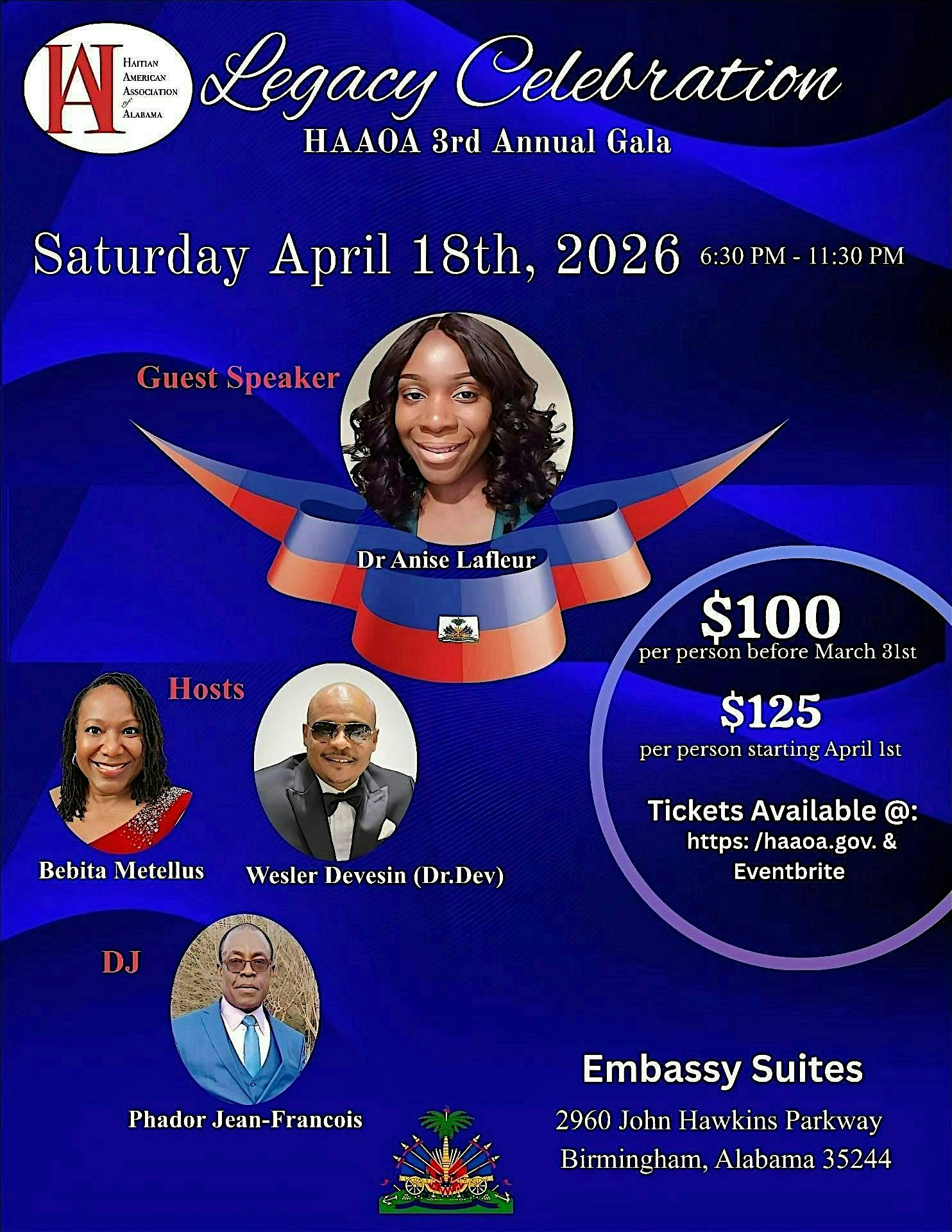 Legacy Celebration/ 3rd Annual Gala at Embassy Suites by Hilton Birmingham Hoover – Birmingham, AL Legacy Celebration/ 3rd Annual Gala at Embassy Suites by Hilton Birmingham Hoover – Birmingham, AL 4 4 people viewed this event. Get ready to celebrate the lasting impact of our community’s achievements at the 3rd Annual Gala – it’s going to be a night to remember! Tickets-RSVP Link Register for event Date And Time Saturday, April 18th, 2026 @ 06:00 PM Location 2960 John Hawkins Parkway, Birmingham, AL 35244 Event Types Charity & CausesDinner or GalaOther Event Category AlabamaBirmingham Share With Friends Facebook Twitter Linkedin Xing Pinterest