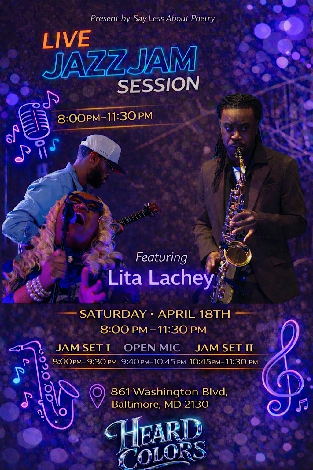 Join us for an unforgettable night of sound and soul as Say Less About Poetry presents a Live Jazz Jam Session featuring the phenomenal Lita Lachey and the dynamic live band HEARD COLORS.