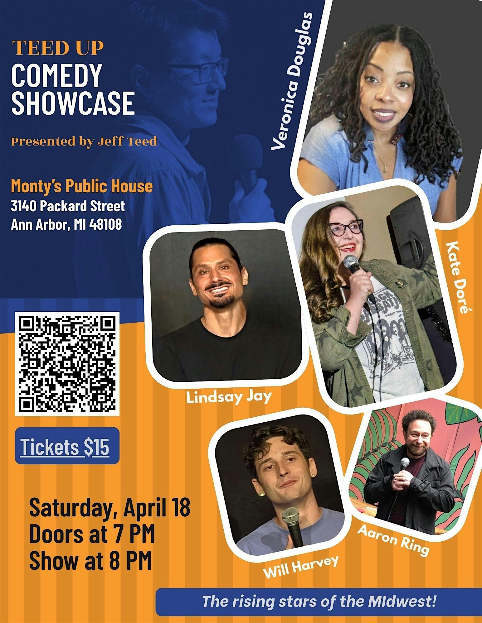 Teed Up Comedy Showcase at Monty’s Pub in Ann Arbor at Monty’s Public House – Ann Arbor, MI Teed Up Comedy Showcase at Monty’s Pub in Ann Arbor at Monty’s Public House – Ann Arbor, MI 4 4 people viewed this event. Jeff Teed presents his first-ever showcase at Monty’s Public House in Ann Arbor. Toledo’s Lindsay Jay will host an electric night of comedy! Tickets-RSVP Link Register for event Date And Time Saturday, April 18th, 2026 @ 08:00 PM Location 3140 Packard Street, Ann Arbor, MI 48108 Event Types ComedyConcert or PerformancePerforming & Visual Arts Event Category Ann ArborMichigan Share With Friends Facebook Twitter Linkedin Xing Pinterest