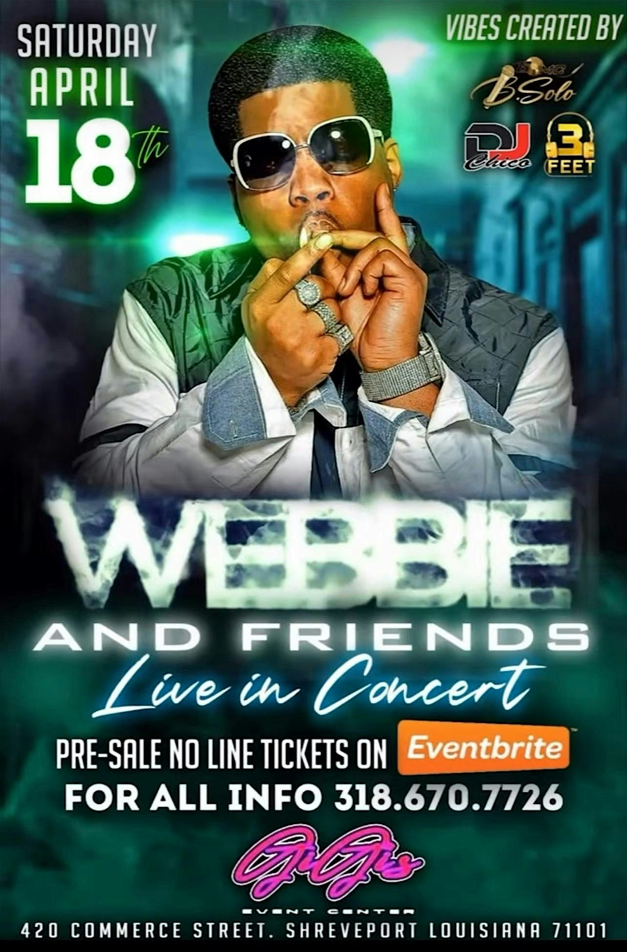 Webbie & Friends @ GIGI’S 4/18/26 at Gigi’s Event Center LLC – Shreveport, LA Webbie & Friends @ GIGI’S 4/18/26 at Gigi’s Event Center LLC – Shreveport, LA 5 5 people viewed this event. Webbie is coming to town, come celebrate with us at GIGI’s. Tickets-RSVP Link Register for event Date And Time Saturday, April 18th, 2026 @ 09:00 PM Location 420 Commerce Street, Shreveport, LA 71101 Event Types MusicParty or Social Gathering Event Category LouisianaShreveport Share With Friends Facebook Twitter Linkedin Xing Pinterest