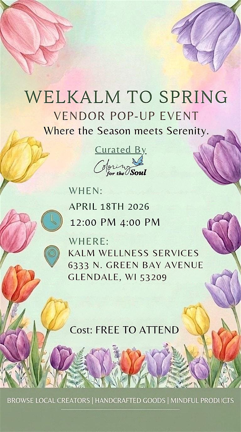 Welkalm to Spring Vendor Pop Up at Kalm Wellness Services, LLC – Glendale, WI