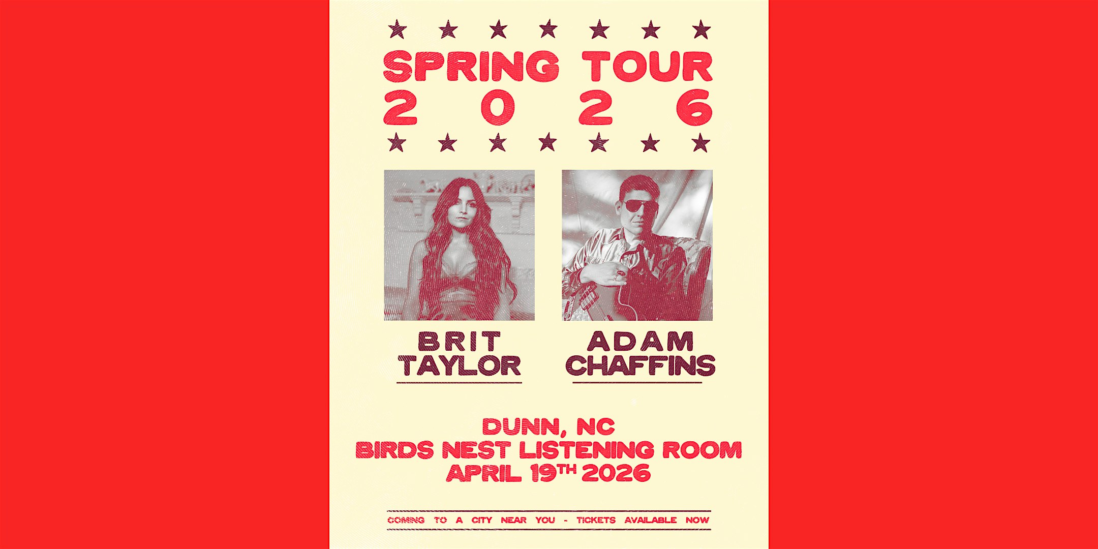 by admin13Feb Brit Taylor & Adam Chaffins at Bird’s Nest Listening Room – Dunn NC at 311 E Broad St – Dunn, NC Brit Taylor & Adam Chaffins at Bird’s Nest Listening Room – Dunn NC at 311 E Broad St – Dunn, NC 2 2 people viewed this event. Brit Taylor & Adam Chaffins play a co-headlining show at Bird’s Nest! Tickets-RSVP Link Date And Time Sunday, April 19th, 2026 10:00 PM (PST) Venue 311 E Broad St Location 311 East Broad Street, Dunn, NC 28334 Event Types Concert or PerformanceMusic Event Category North Carolina Share With Friends Facebook Twitter Linkedin Xing Pinterest Share This Post: