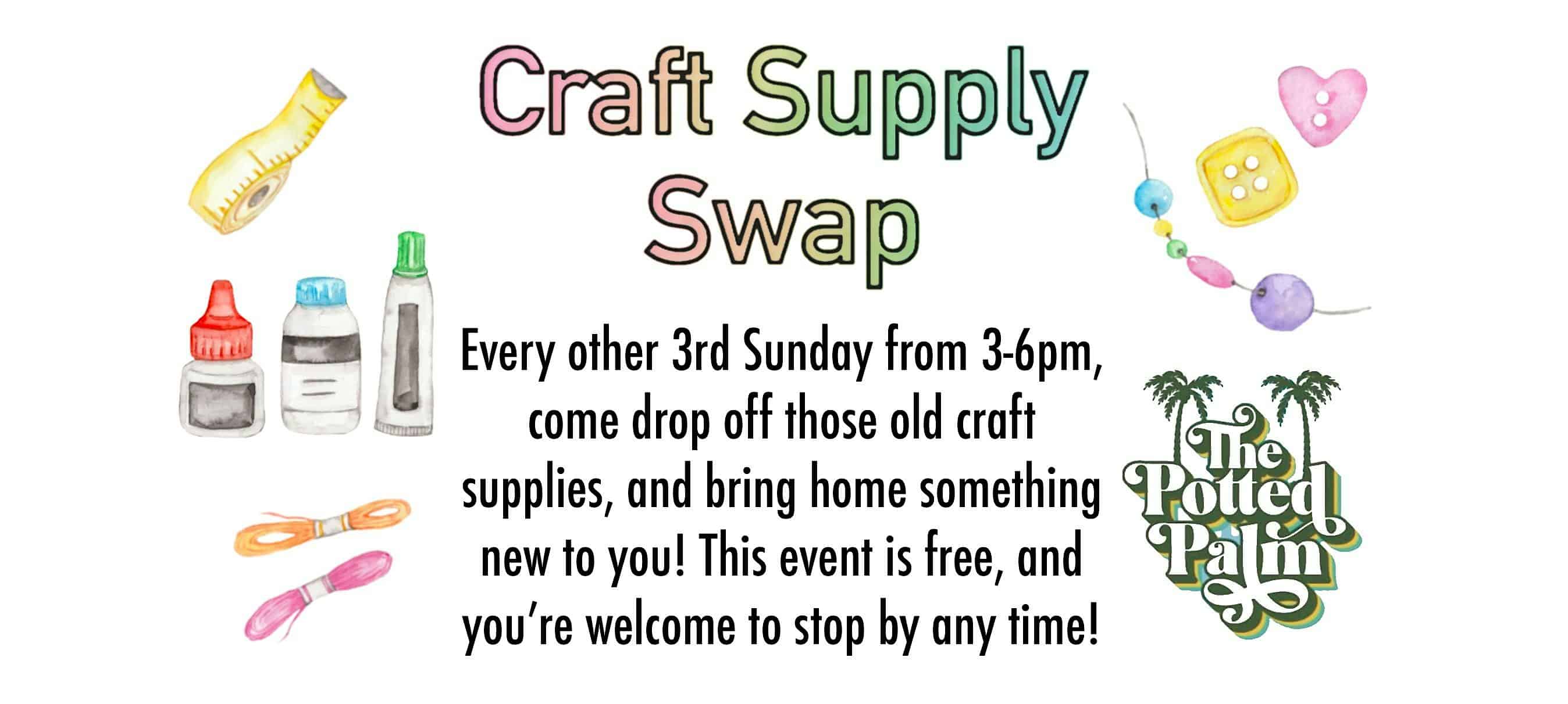 by admin14Feb Craft Supply Swap at The Potted Palm – Cincinnati, OH Craft Supply Swap at The Potted Palm – Cincinnati, OH 1 1 people viewed this event. You know you have a bunch of craft supplies sitting around for those projects that you never got to – bring them in and swap them out! Tickets-RSVP Link Date And Time Sunday, April 19th, 2026 07:00 PM (PST) Venue The Potted Palm Location 2123 Beechmont Avenue, Cincinnati, OH 45230 Event Types Community & CultureParty or Social Gathering Event Category CincinnatiOhio Share With Friends Facebook Twitter Linkedin Xing Pinterest Share This Post: