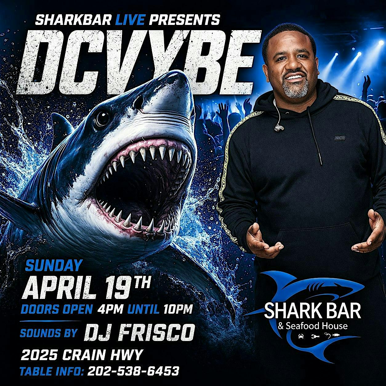 Dc Vybe at Shark bar at Shark bar and seafood house – Waldorf, MD Dc Vybe at Shark bar at Shark bar and seafood house – Waldorf, MD 5 5 people viewed this event. DAY CONCERT WITH DC VYBE “SHARKBAR LIVE PRESENTS” GROWN & SEXY DAYPARTY Sunday, April 19TH 4-10pm Performing LIVE at 7:30pm DMV’s own…DCVYBE BAND & special guest DJ FRISCO Grown & Sexy Day Vibes $35 Early bird tickets Www.dcvybesharkbar7.eventbrite.com Tickets-RSVP Link Register for event Date And Time Sunday, April 19th, 2026 @ 04:00 PM Location Shark bar and seafood house 2056 Crain Highway, Waldorf, MD 20601 Event Types Concert or PerformanceMusic Event Category MarylandNational Harbor Share With Friends Facebook Twitter Linkedin Xing Pinterest