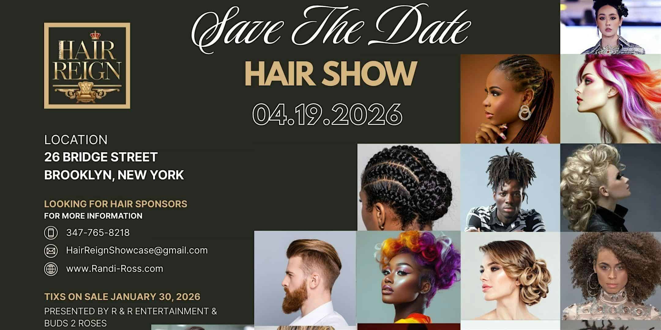 by admin14Feb HAIR REIGN SHOWCASE at 26 Bridge St – Brooklyn, NY HAIR REIGN SHOWCASE at 26 Bridge St – Brooklyn, NY 1 1 people viewed this event. Get ready for HAIR REIGN SHOWCASE, where bold styles and fresh cuts rule the scene live! Tickets-RSVP Link Date And Time Sunday, April 19th, 2026 03:00 PM (PST) Venue 26 Bridge St Location 26 Bridge Street, Brooklyn, NY 11201 Event Types Concert or PerformanceFashion & Beauty Event Category New York Share With Friends Facebook Twitter Linkedin Xing Pinterest Share This Post: